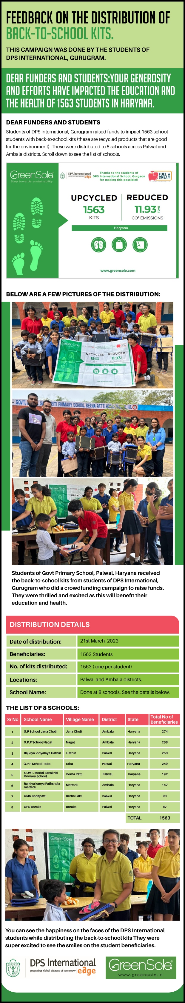 The Mumbai-based NGO- Greensole has developed a wonderful back-to-school kit that consists of:-
