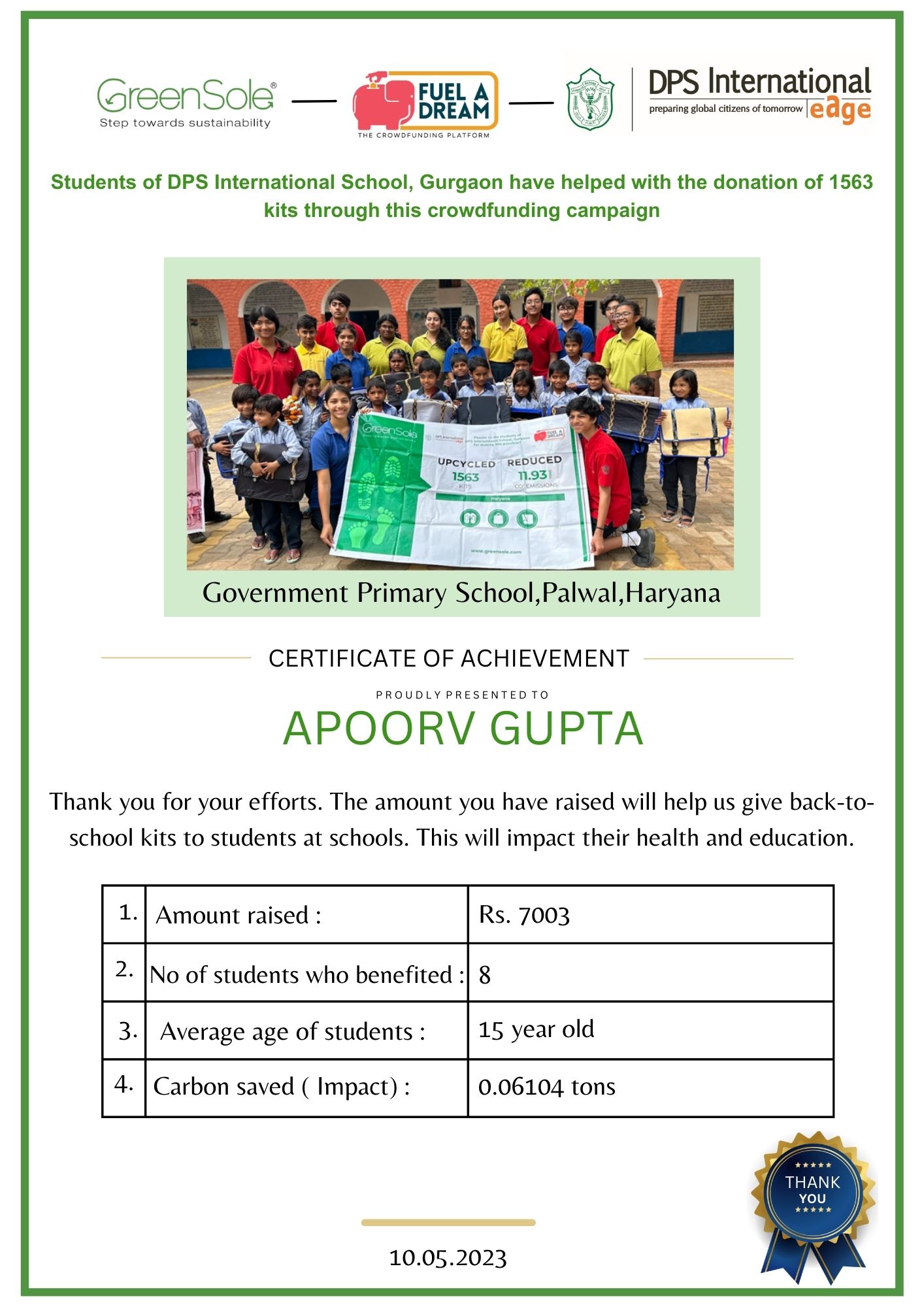 I have undertaken this campaign because I was surprised to learn that many students from low-income homes in Haryana who go to school do not have basic school gear like proper footwear or a school bag and often sit on the hard ground in order to study at school.