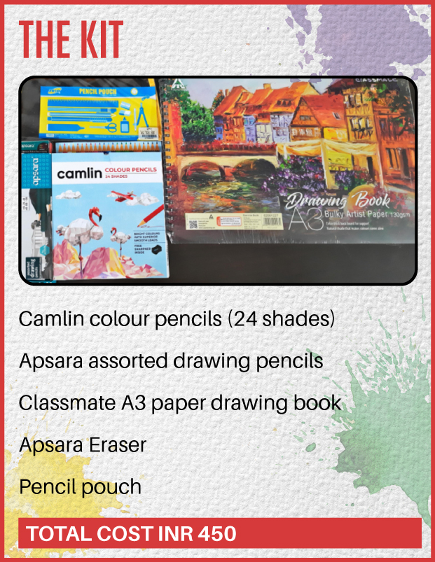 Each Art kit will cost just INR 450 and will help bring smiles on their faces. Fund INR 4500 and impact 10 kids. It is my endeavor to bring art to these children and make a difference in their lives.