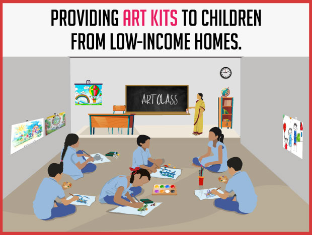 For children from underprivileged homes, going to school is a luxury. Many families prefer to send their children to work rather than to school. Most of them are unaware of the importance of education and co-curricular activities in a child's life. Most of the children go to a government school, where they do not get exposure to explore different co-curricular activities and develop hobbies. Due to this many students who have real potential in art are deprived of exploring this.