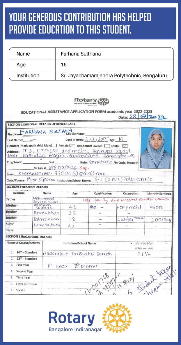 Funding for this campaign is eligible for tax breaks as Rotary Bangalore Indiranagar is registered and you can avail of benefits under section 80G of the IT act.