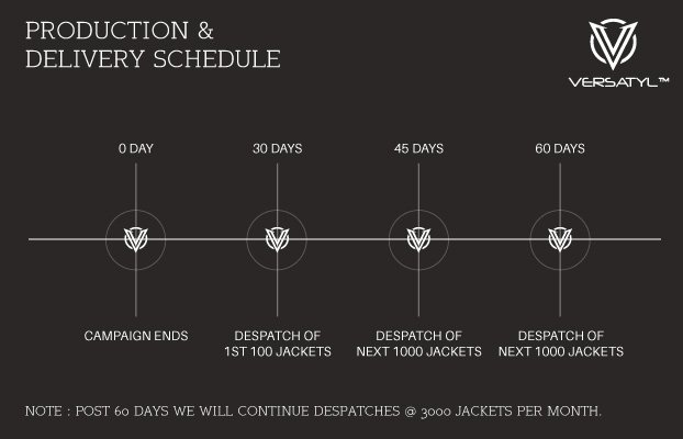 Emirate Fashions Pvt Ltd has a long history in clothing manufacturing and has been making garments for a few of the reputed brands in India. The VERSATYL is the result of massive demand that we've seen from observing travellers, bikers, cyclists & the outdoor person. Rather than come up with another Jacket, we decided to give "people on the move" a piece of clothing that gave them the freedom to carry all their essentials around on their person! We're launching this campaign on fueladream.com to make it easier to reach out to customers globally!