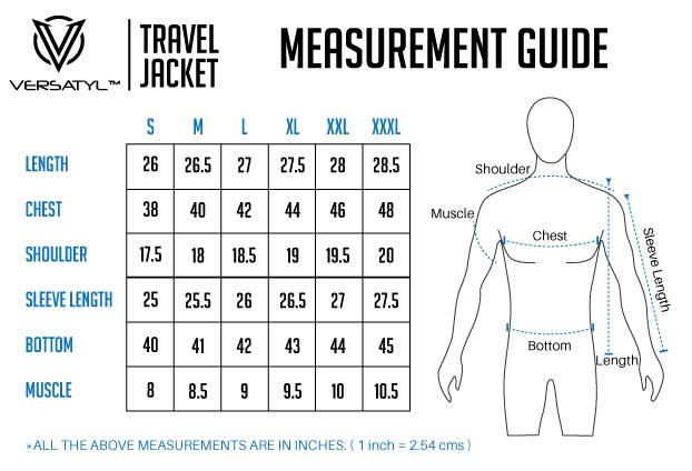Jackets are usually worn on one or two layers of clothing. In addition the VERSATYL can pack quite a lot of travel stuff making it bulk up a bit. The last thing you want is a super tight fit. Ordering a size bigger is what we would recommend. The final call is yours.