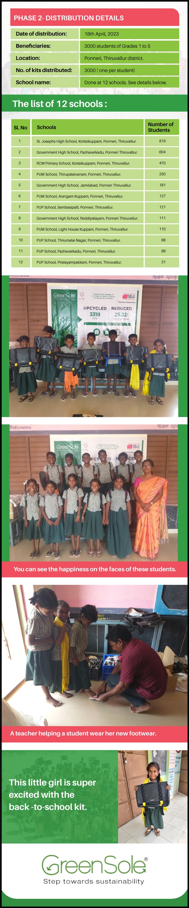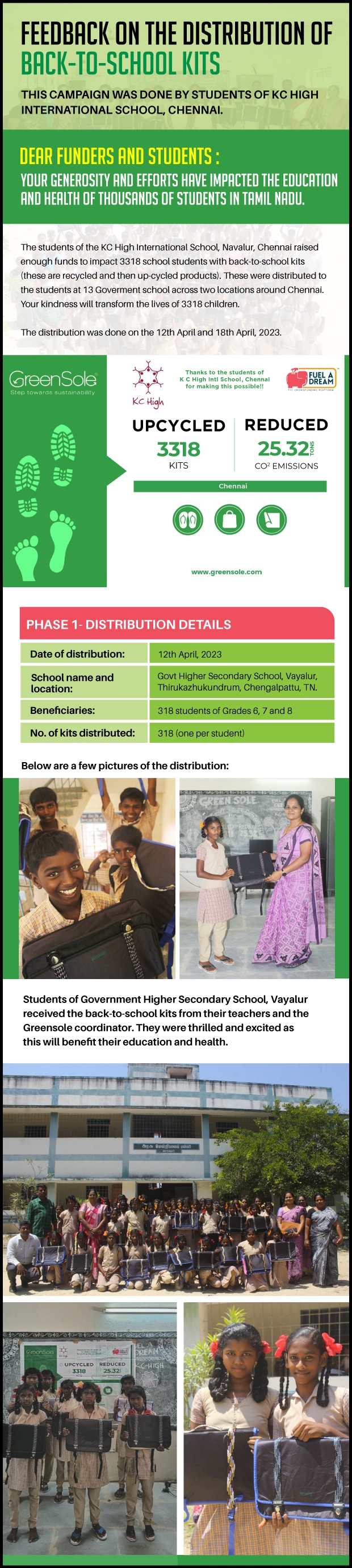 I have undertaken this campaign because I was surprised to learn that many students from low-income homes in Tamil Nadu, who go to school (mainly govt schools) do not have basic school gear like proper footwear or a school bag and often sit on hard ground in order to study at school.