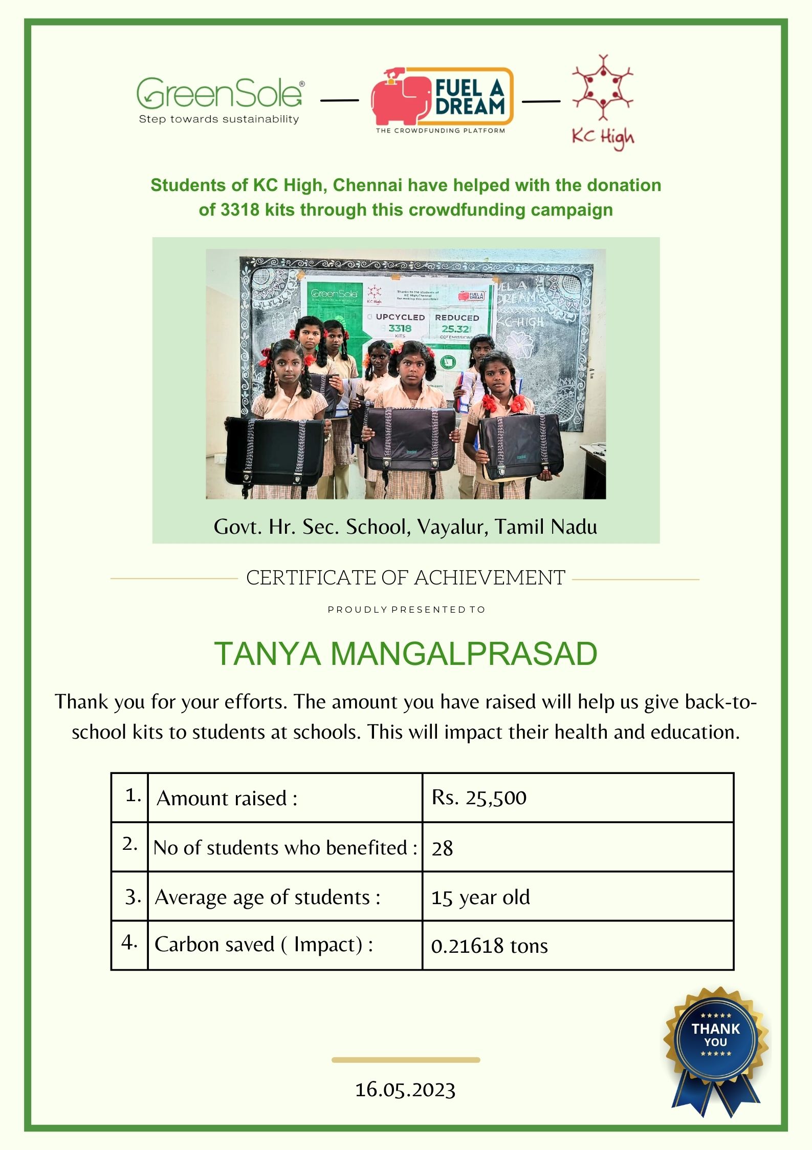 I have undertaken this campaign because I was surprised to learn that many students from low-income homes in Tamil Nadu, who go to school (mainly govt schools) do not have basic school gear like proper footwear or a school bag and often sit on hard ground in order to study at school.