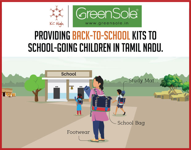 The back-to-school kit costs just INR 900 and gives students a pair of recycled footwear, a recycled study mat to sit comfortably at school or home and a recycled school bag for books. This is a very small amount to impact a student. Fund INR 4500 for example and transform the lives of 5 students.