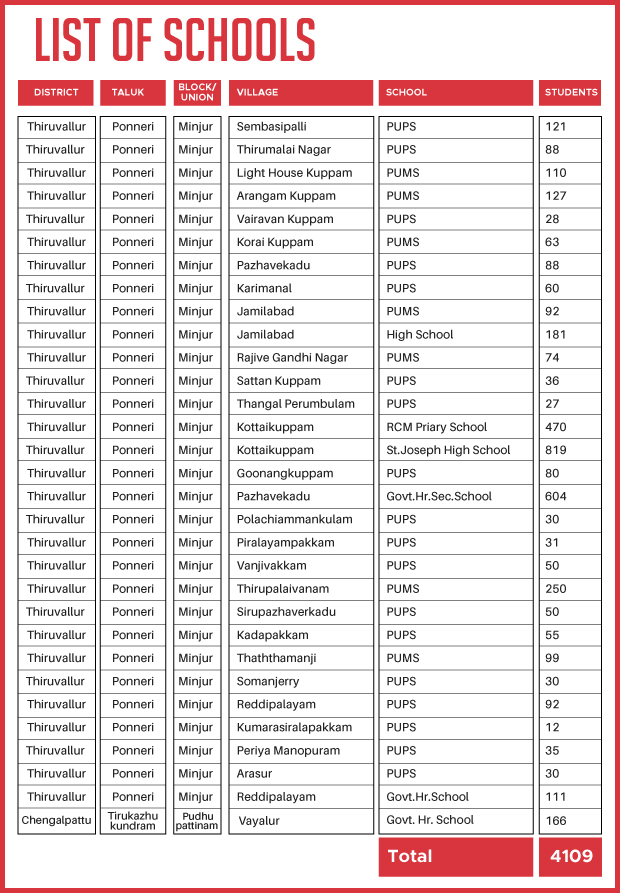 I have undertaken this campaign because I was surprised to learn that many students from low-income homes in Tamil Nadu, who go to school (mainly govt schools) do not have basic school gear like proper footwear or a school bag and often sit on hard ground in order to study at school.