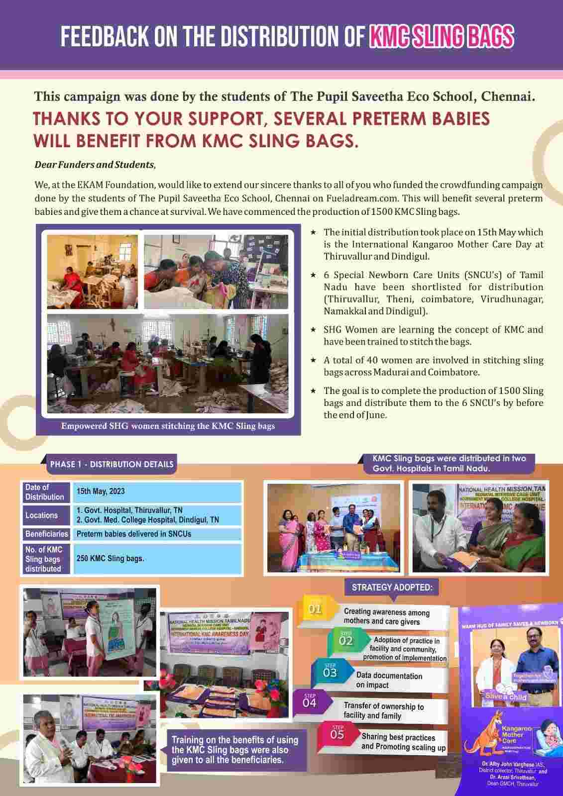 Two such KMC bags are given for each baby. The NGO also takes care of the counselling, training, and monitoring of the beneficiaries. The funds from this campaign will be used to distribute these sling bags in government hospital ICUs across Tamil Nadu.