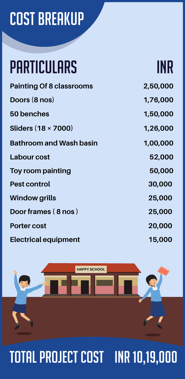 The below is the estimate of the basic cost of transforming this school in Dharavi into a Happy School.