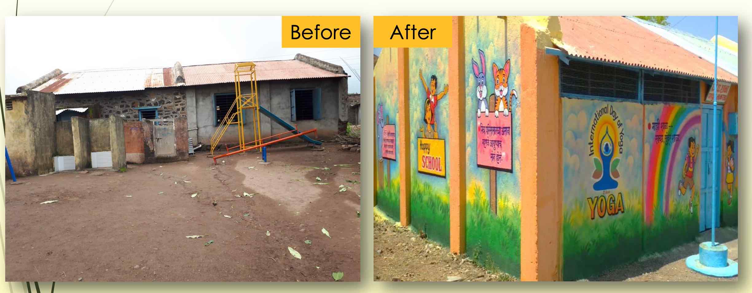 See the images below of some schools that have been transformed and see the graphic which shows the different components of the happy school.