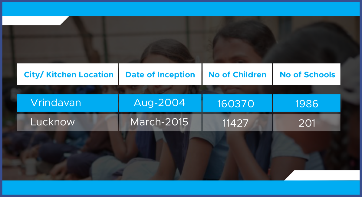 Employing a semi-automated, intensive operating model ensures high-quality food. The programme has incorporated a centralized approach, backed by technology-driven processes such as enhanced roti-making machines, steam-operated rice and dal cauldrons, heavy-duty vegetable cutters, sophisticated rice and vegetable cleaning machines, etc.
