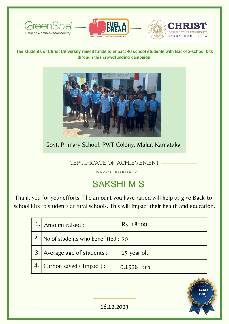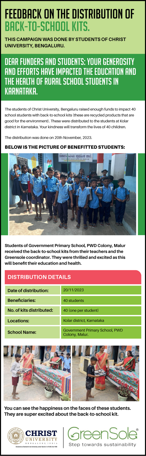I have undertaken this campaign because I was surprised to learn that many students from low-income homes in Karnataka, who go to school (mainly govt schools) do not have basic school gear like proper footwear or a school bag and often sit on hard ground in order to study at school.