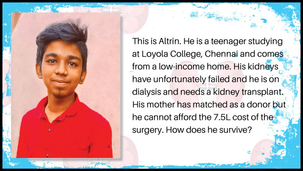 This is impossible to afford for patients coming from economically backward homes. Unfortunately, there are thousands of people in and around Chennai who cannot afford dialysis and a transplant.