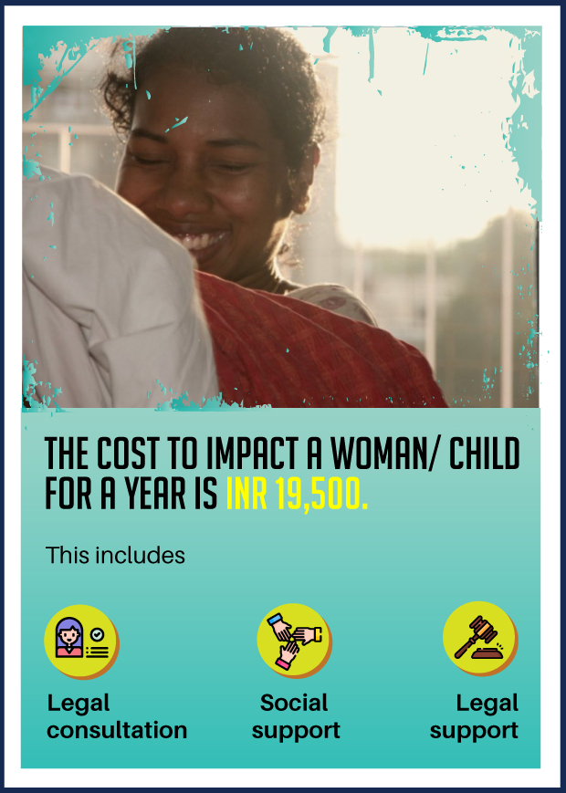 IT COSTS JUST INR 19500 TO PROVIDE SOCIAL AND LEGAL SUPPORT TO ONE WOMAN/ GIRL.