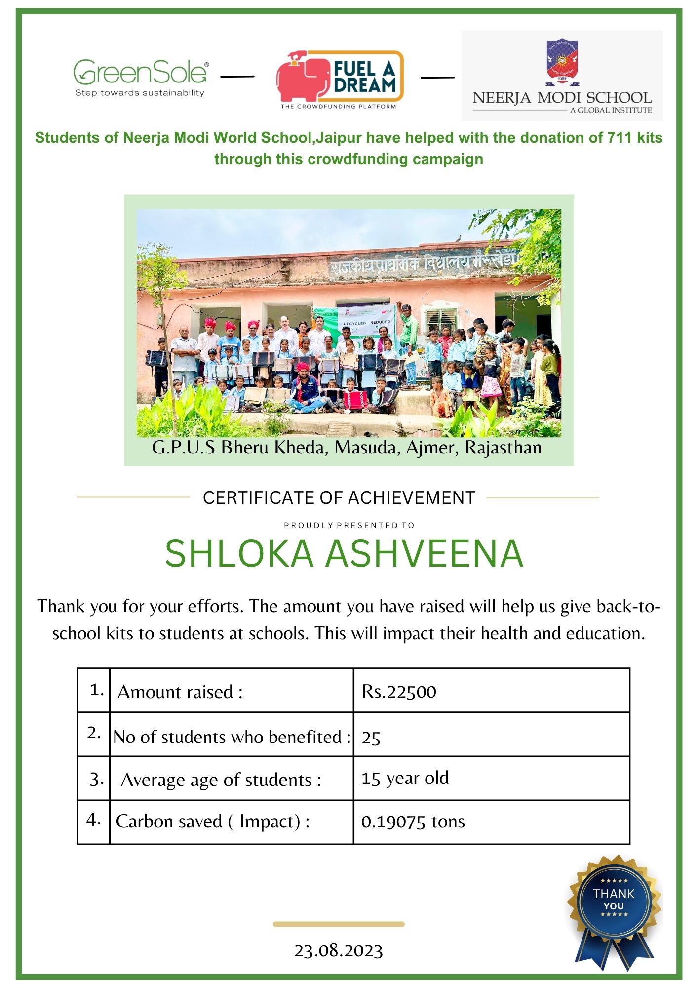 The kit makes a BIG impact on rural students and will benefit thousands of students in RAJASTHAN.
