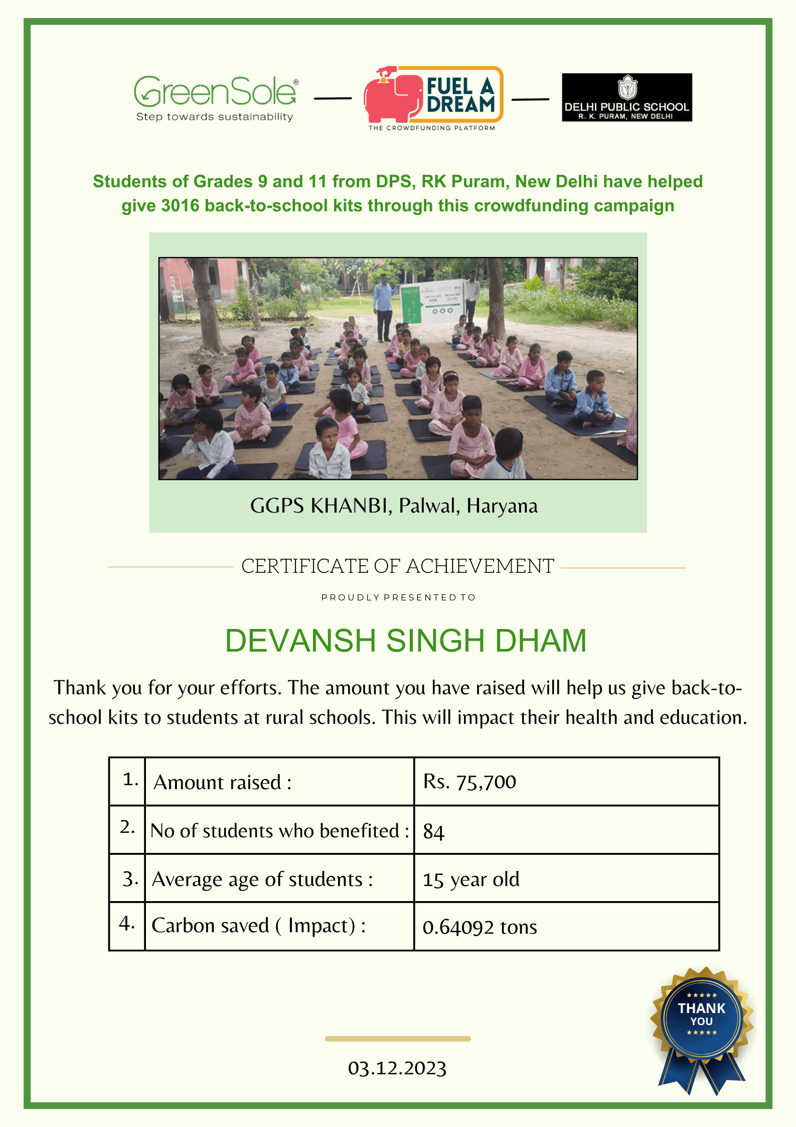 I have undertaken this campaign because I was surprised to learn that many students from low-income homes in Haryana, who go to school (mainly govt schools) do not have basic school gear like proper footwear or a school bag and often sit on the hard ground in order to study at school.