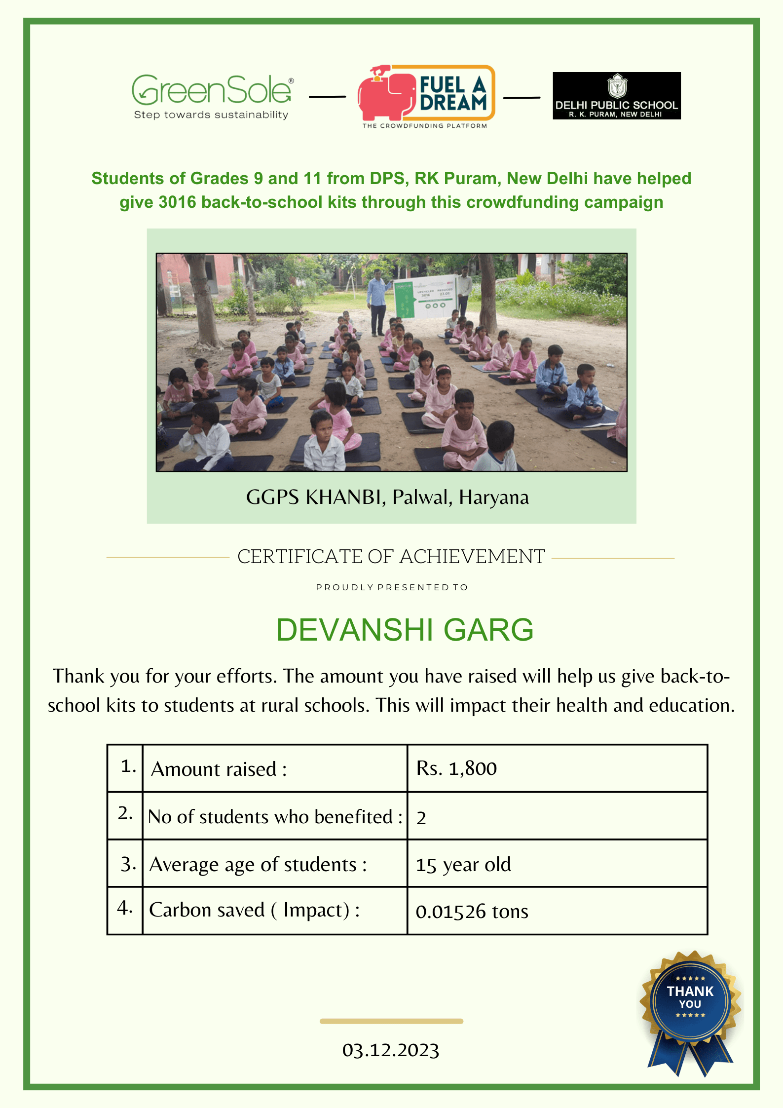 I have undertaken this campaign because I was surprised to learn that many students from low-income homes in Haryana, who go to school (mainly govt schools) do not have basic school gear like proper footwear or a school bag and often sit on the hard ground in order to study at school.