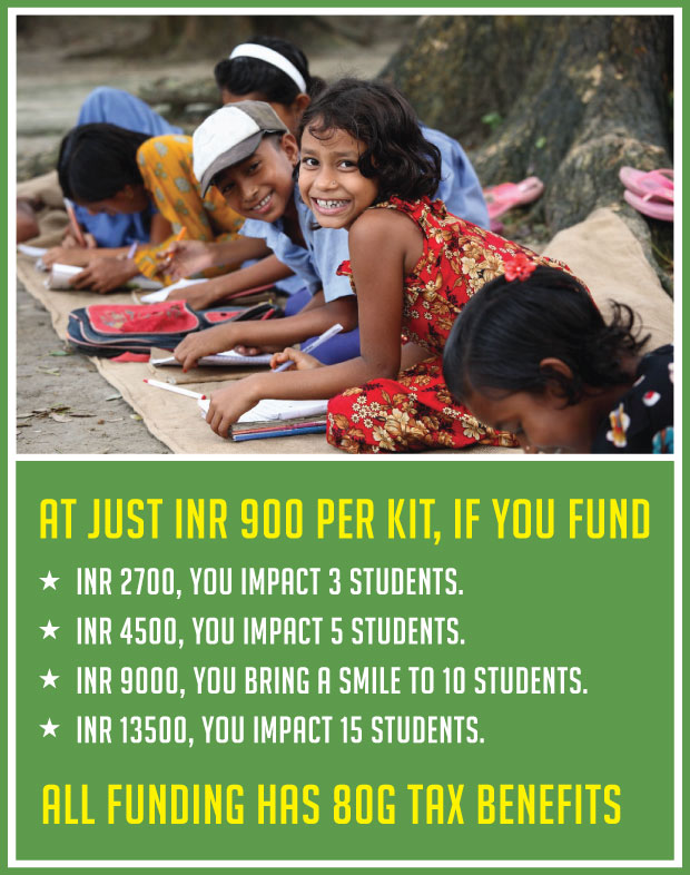 EACH BACK-TO-SCHOOL KIT COSTS JUST INR 900.