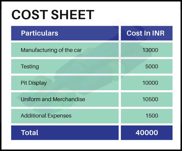 Nacira Panthers needs INR 40000 for various activities. This includes registration, car manufacturing, pit display, testing, marketing, and merchandise.