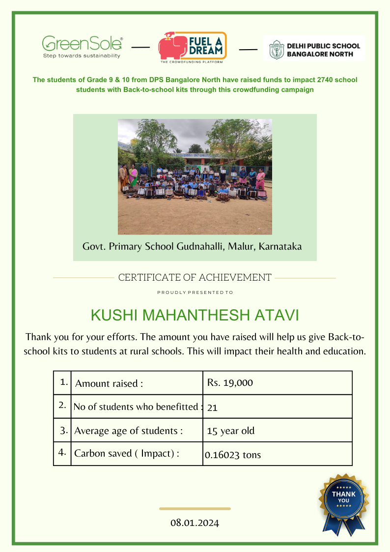 My name is Kushi. I am 14-years-old and a Grade 9 student at DPS, Bangalore North.