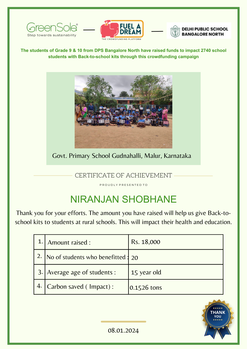 I have undertaken this campaign because I was surprised to learn that many students from low-income homes in Karnataka, who go to school (mainly govt schools) do not have basic school gear like proper footwear or a school bag and often sit on the hard ground in order to study at school.
