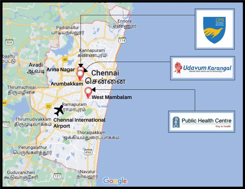 rehabilitation and education. They also reach out to the community's needs. They are located at Arumbakkam,