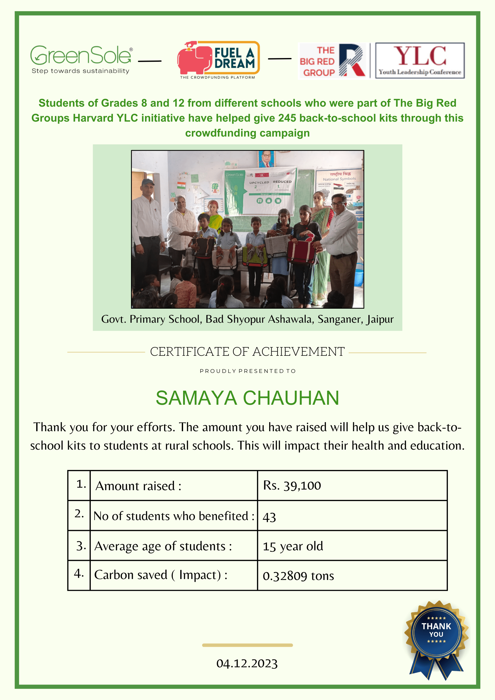 I have undertaken this campaign because I was surprised to learn that many students from low-income homes in Rajasthan who go to school (mainly govt schools) do not have basic school gear like proper footwear or a school bag and often sit on the hard ground in order to study at school.