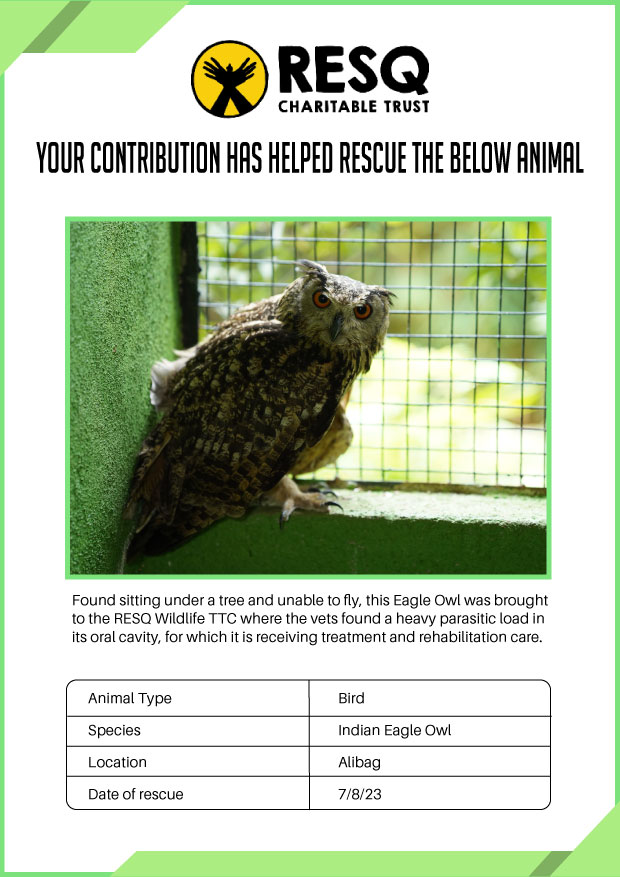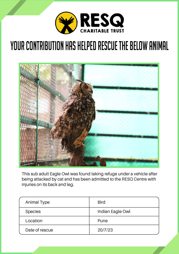 I was delighted to learn that the NGO RESQ works tirelessly to help animals in need. The NGO is authorized by the Government of Maharashtra to conduct state-wide wildlife rescue in collaboration with the Maharashtra Forest Department.