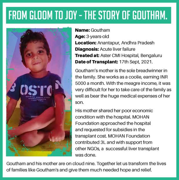 We will together be able to save the lives of many children and bring cheer to the lives of their families. Children like Goutham for example - read his story below.