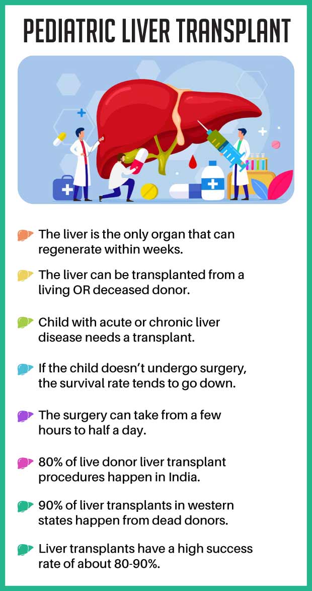 Pediatric liver transplant refers to the surgical procedure of replacing a diseased or damaged liver in a child. The replacement is done with a healthy liver from a deceased or a living donor. It is a complex and specialized procedure performed in children who have end-stage liver disease or liver failure. There are very few public hospitals performing transplants. More than 95% of transplants are currently performed in the private sector.