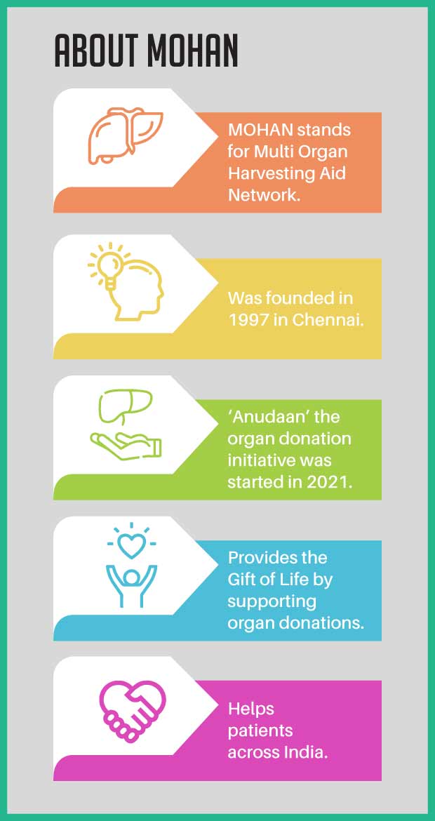 A pioneering NGO with a unique mandate of promoting deceased organ donation in the country, the MOHAN Foundation was set up in 1997 in Chennai. It took up the cause of organ donation at a time when no one in the country was talking about it and the environment was hostile towards this highly taboo topic and therefore has been a torch bearer in this space.
