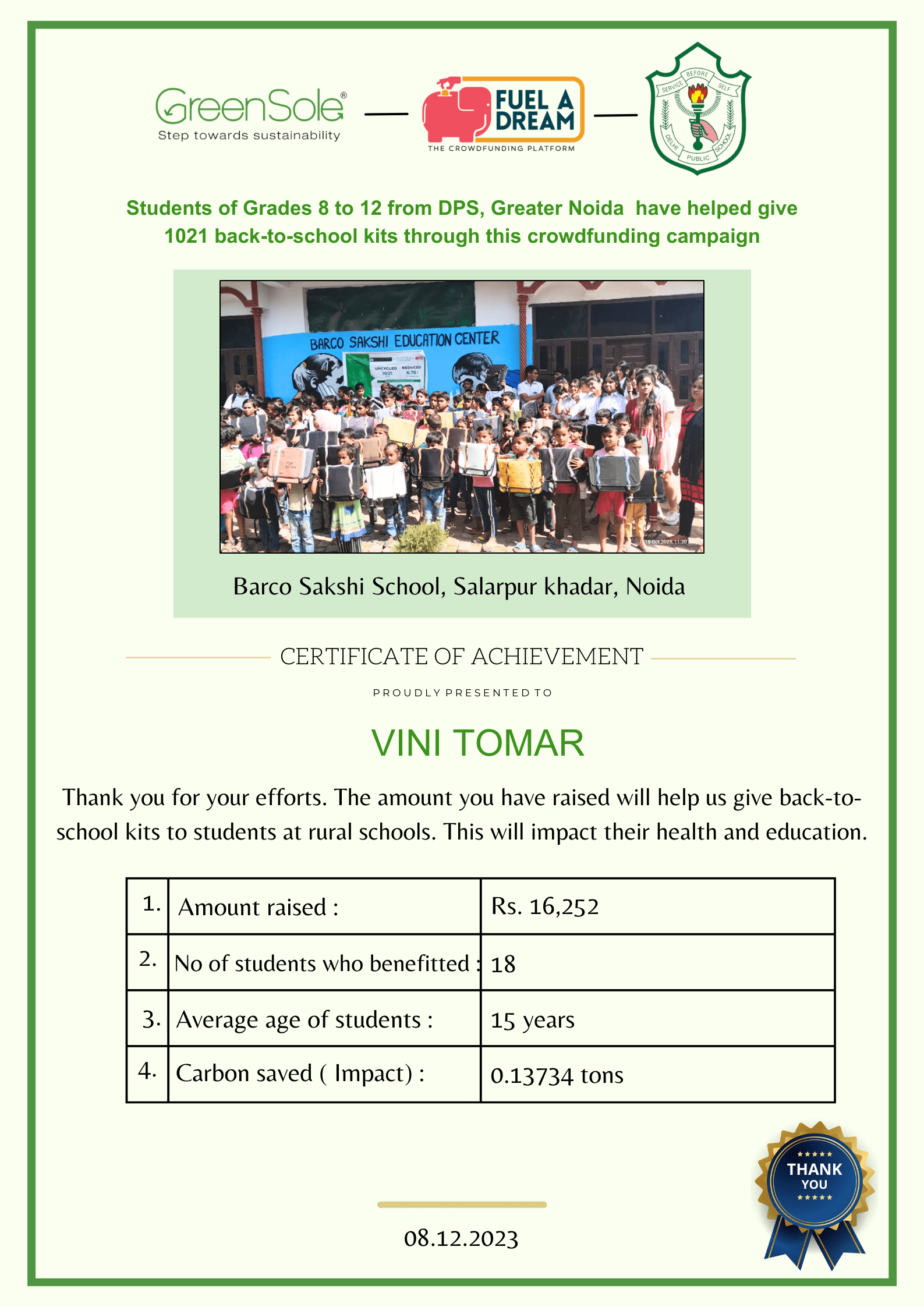 The Mumbai-based NGO Greensole has developed a unique back-to-school kit that has:-
