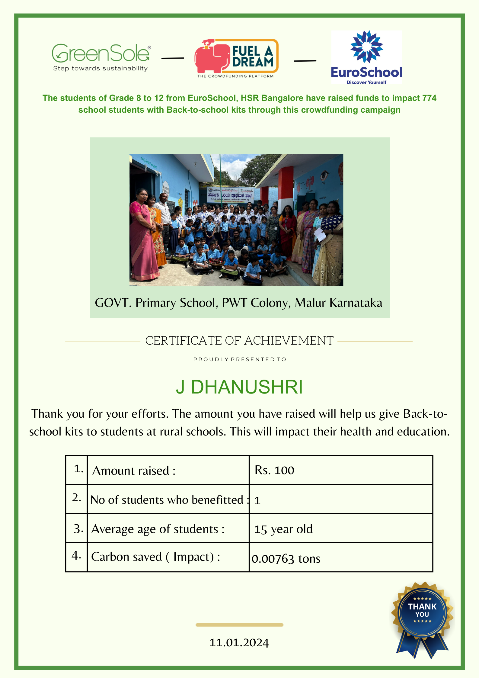 My name is Dhanushri. I am 15 years-old and a Grade 10 student at EuroSchool, HSR, Bengaluru.