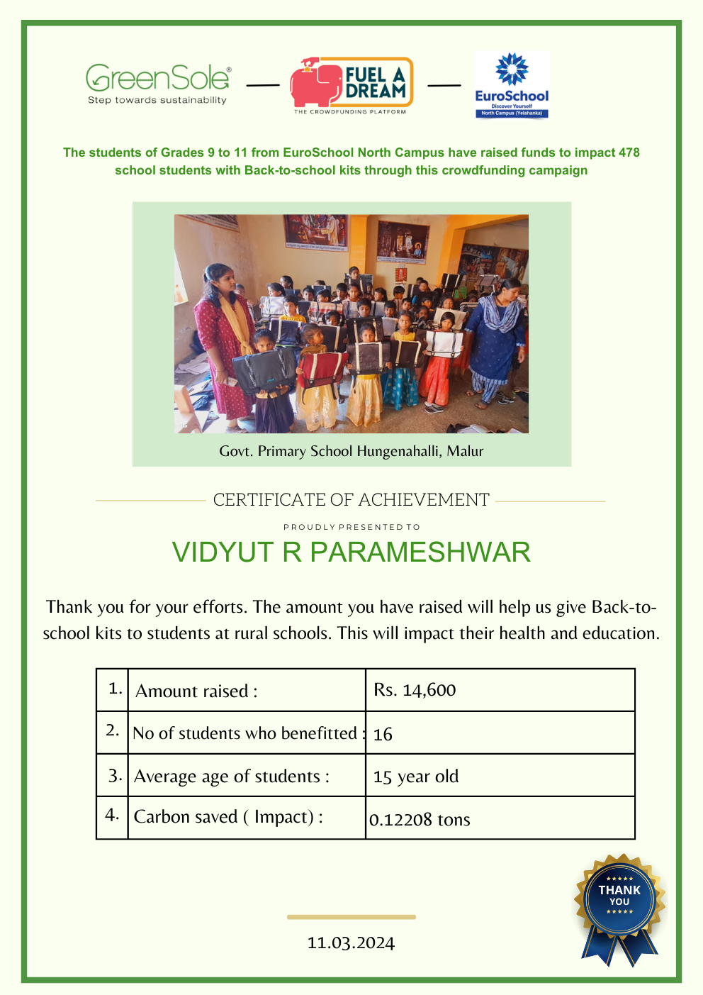 My name is Vidyut R Parameshwar. I am 14-years-old and a Grade 9 student at EuroSchool North Campus, Bengaluru.