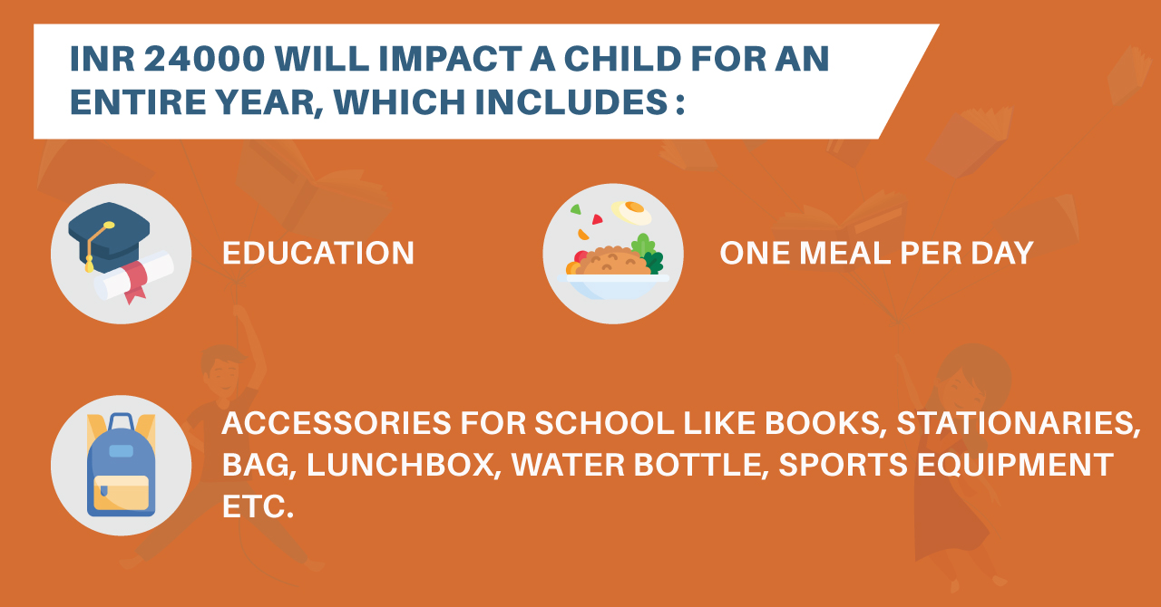 The cost to impact one child is approx INR 24000. (INR 2000 per month - this includes mid-day meals)