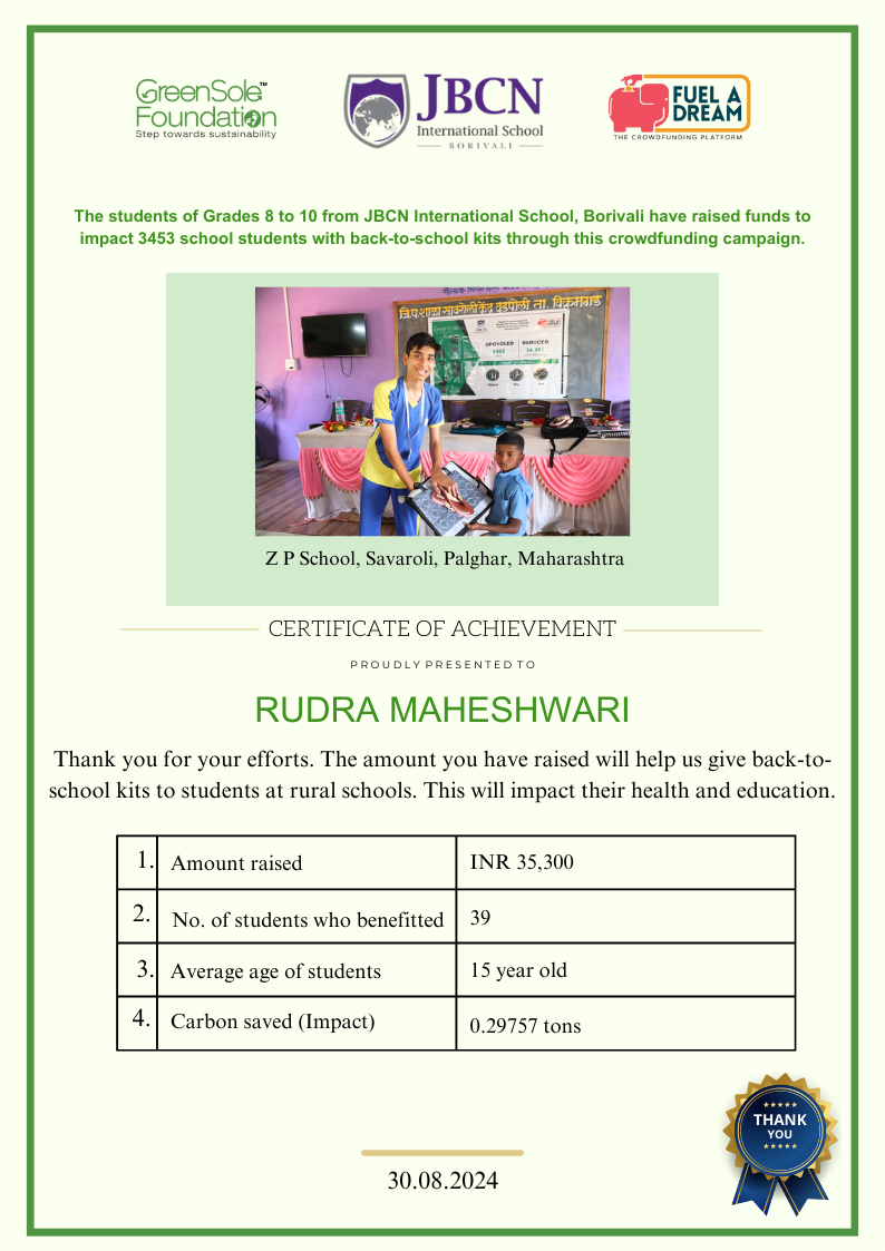 I have undertaken this campaign because I was surprised to learn that many students from low-income homes in Maharashtra, who go to school (mainly govt schools) do not have basic school gear like proper footwear or a school bag and often sit on the hard ground in order to study at school.
