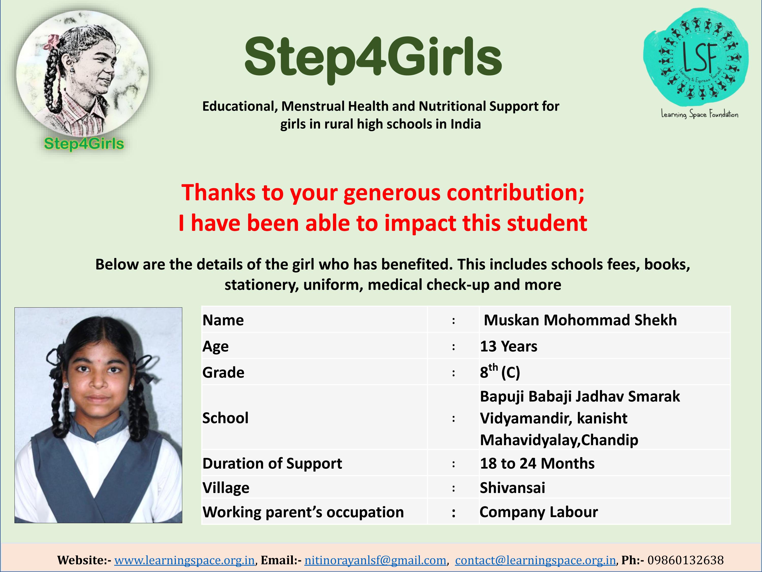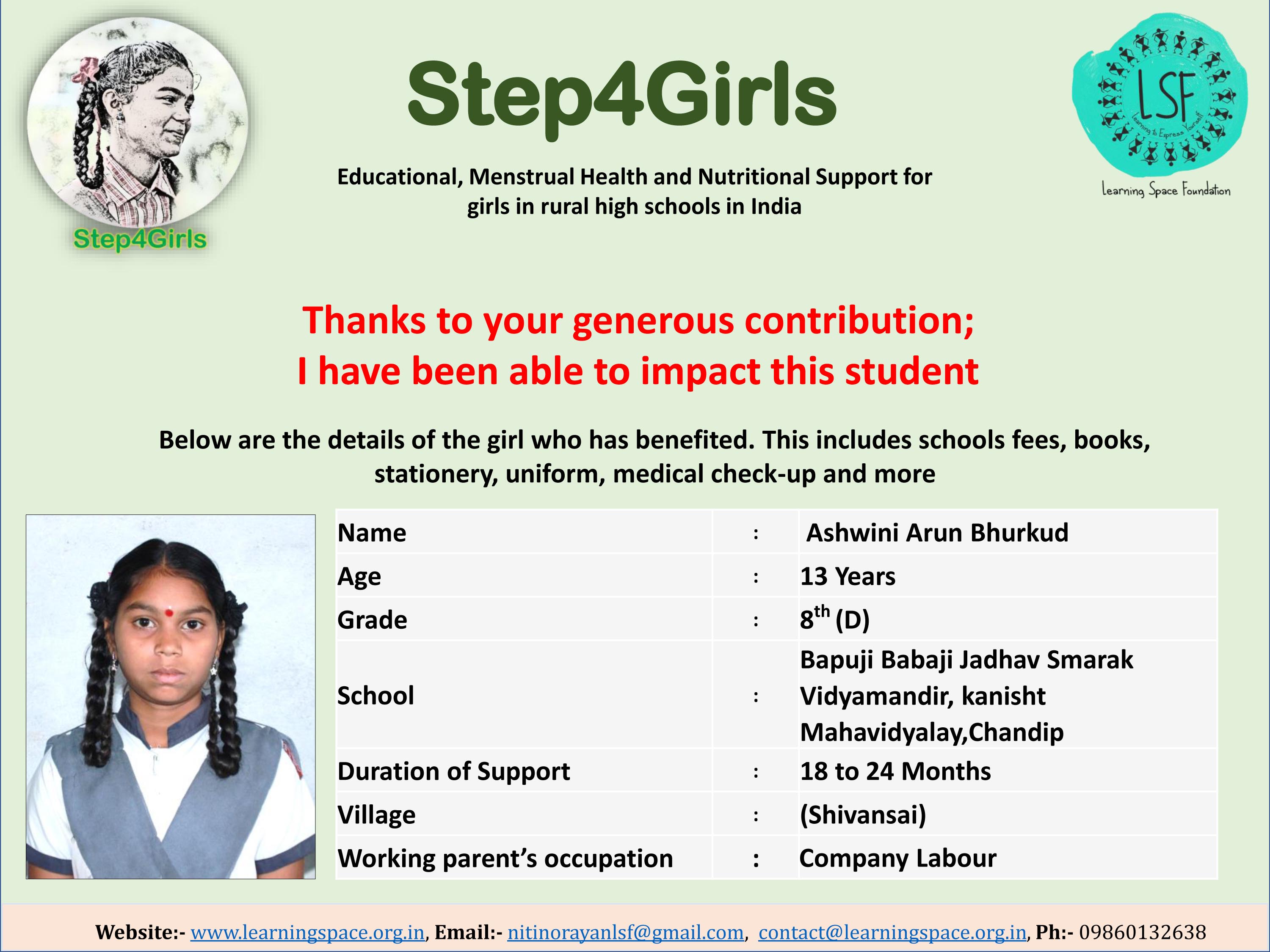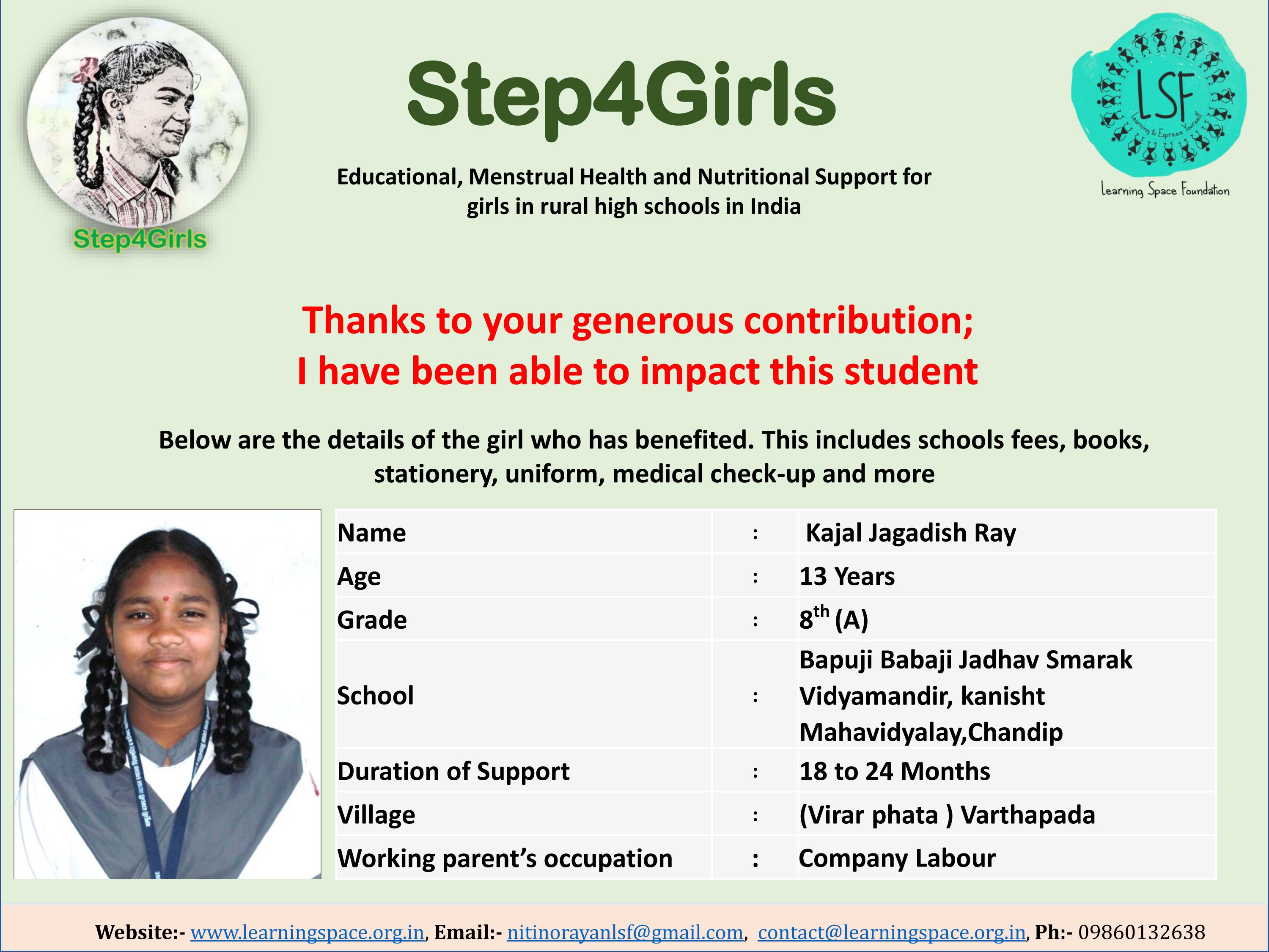 Please support my campaign as a simple act of kindness can have a profound impact on a girl's life. Let us together lend a helping hand and transform their lives.