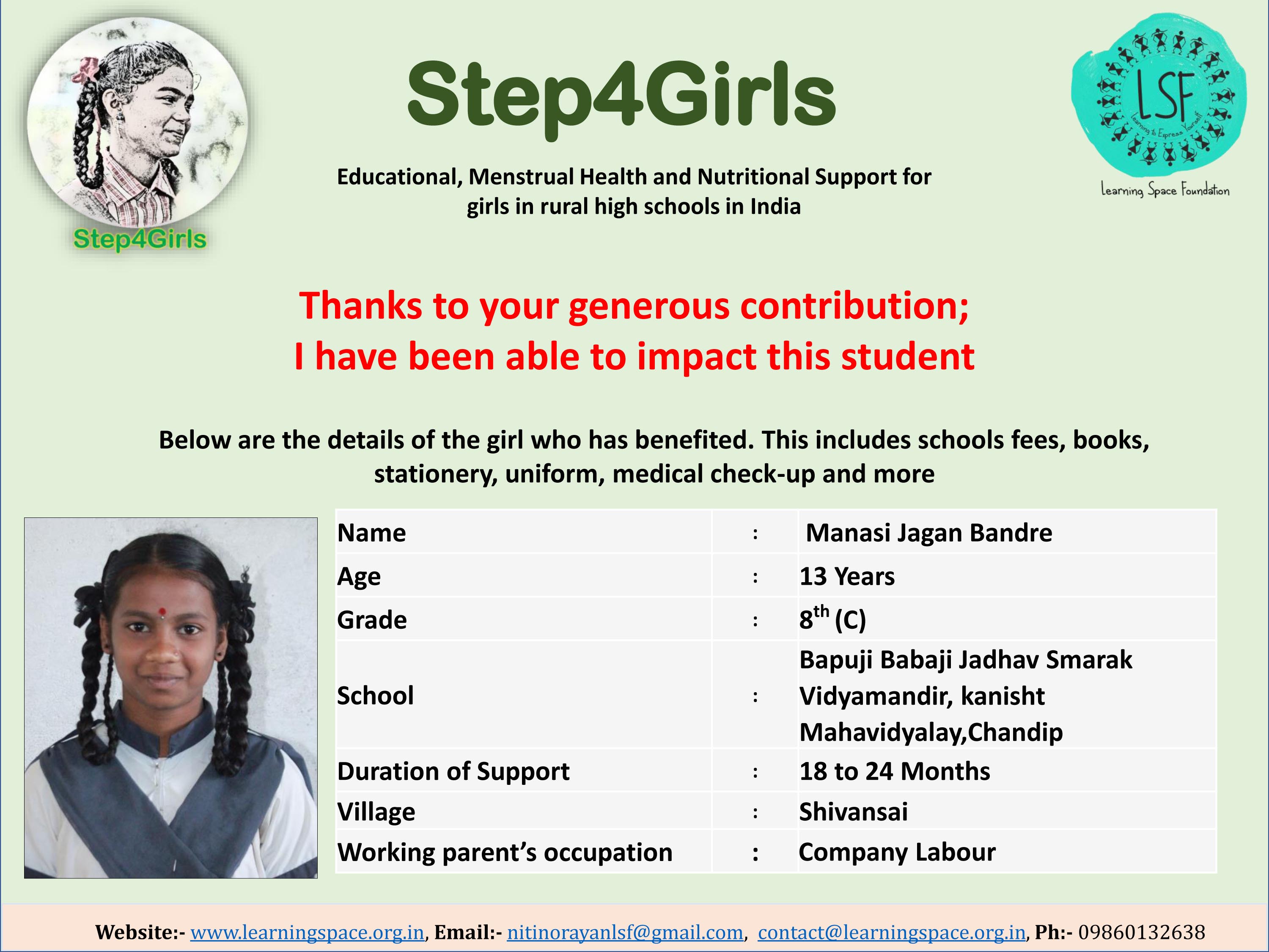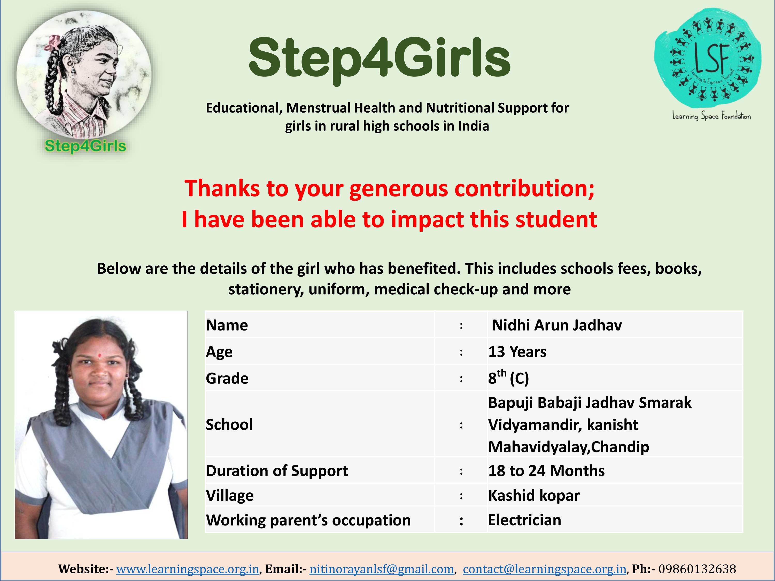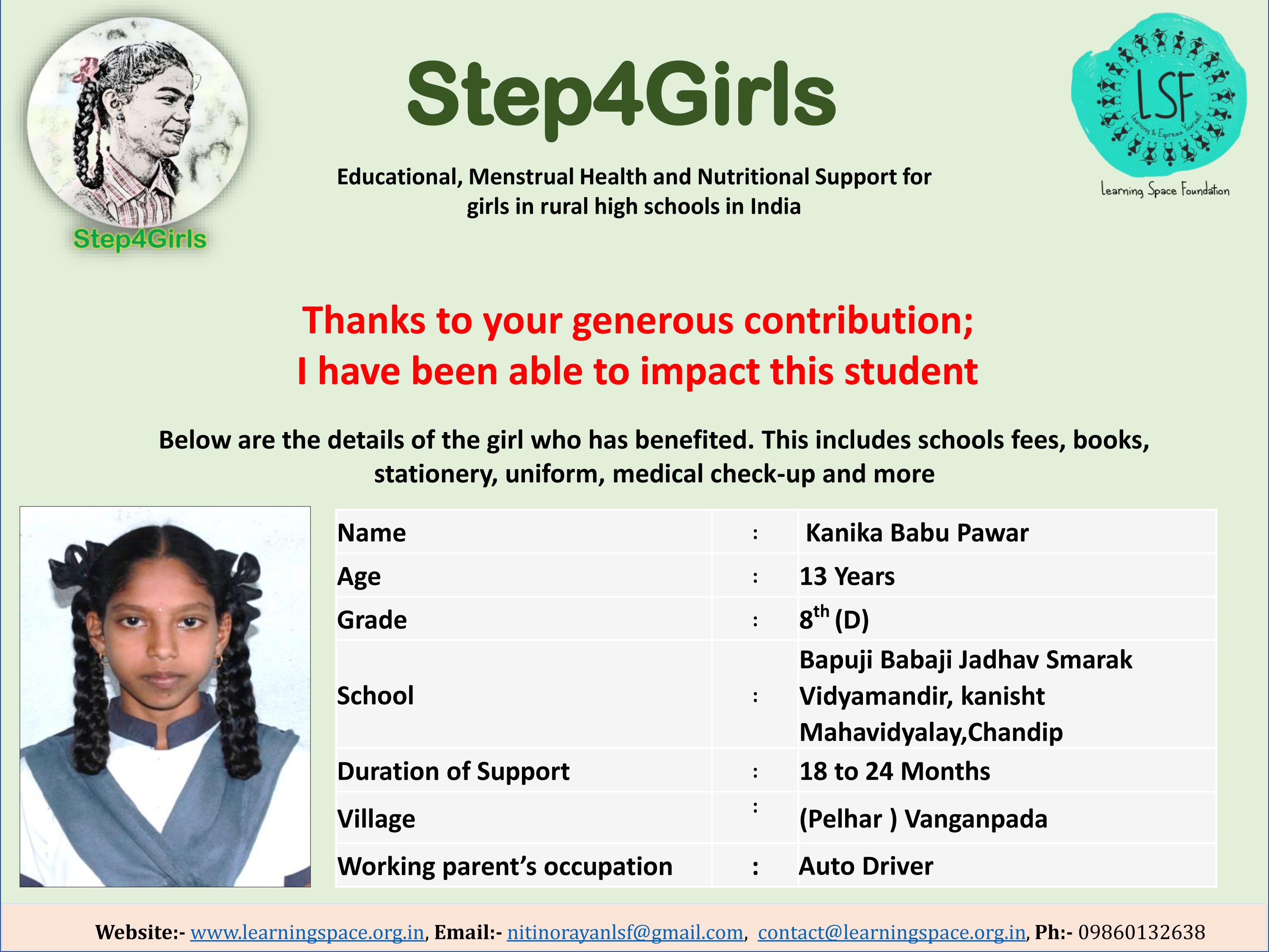 Please support my campaign as a simple act of kindness can have a profound impact on a girl's life. Let us together lend a helping hand and transform their lives.