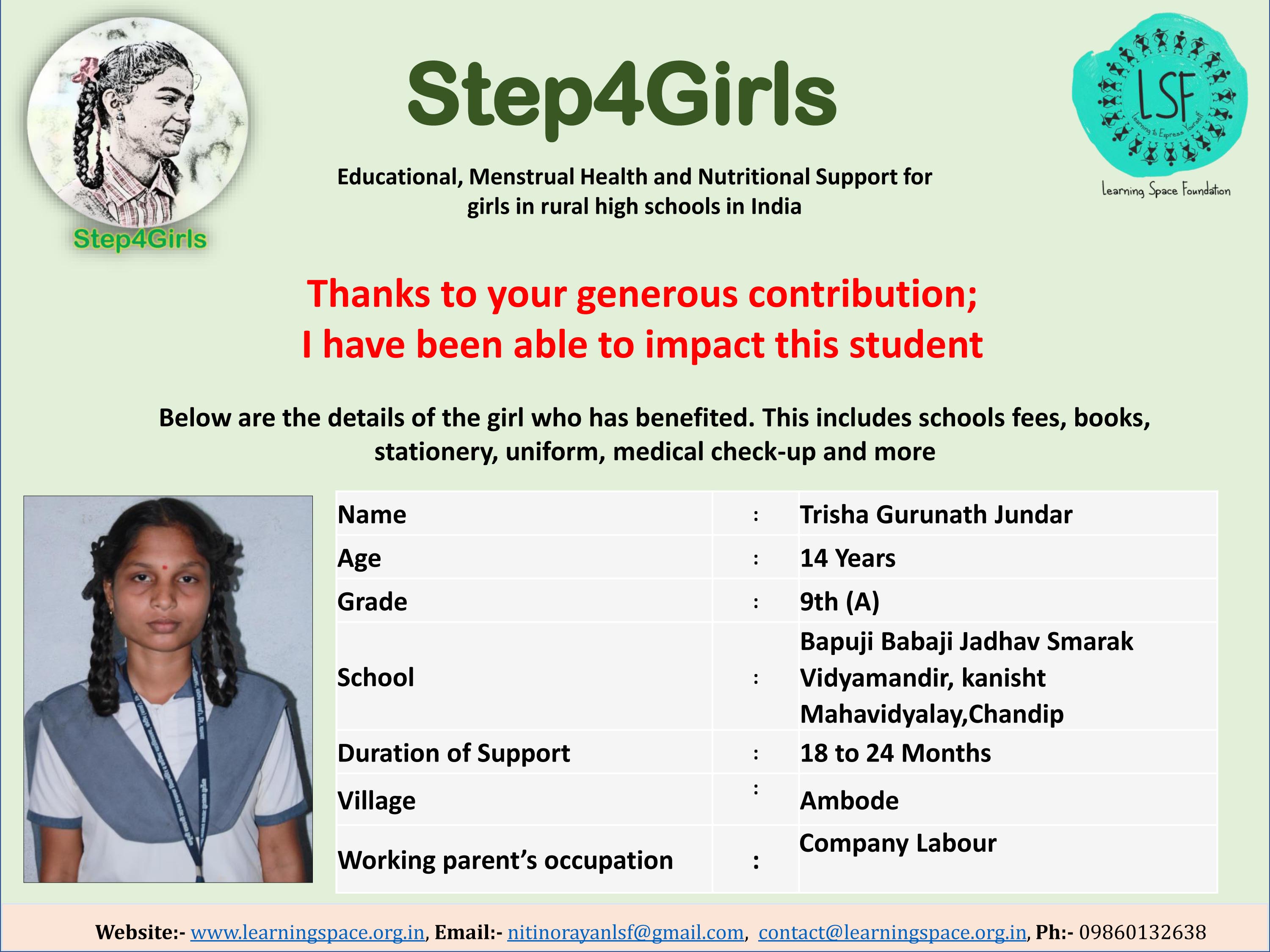 Please support my campaign as a simple act of kindness can have a profound impact on a girl's life. Let us together lend a helping hand and transform their lives.