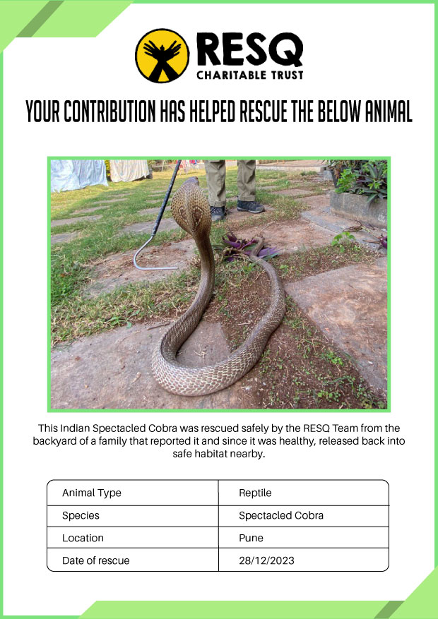 RESQ was founded in 2007 to provide emergency aid to animals in distress. Since then, the rescue and rehabilitation work of the organization has provided aid to thousands of animals of over 200+ species, improved public health and safety outcomes, and actively worked on preventing human-animal conflict across multiple urban and rural ecosystems.