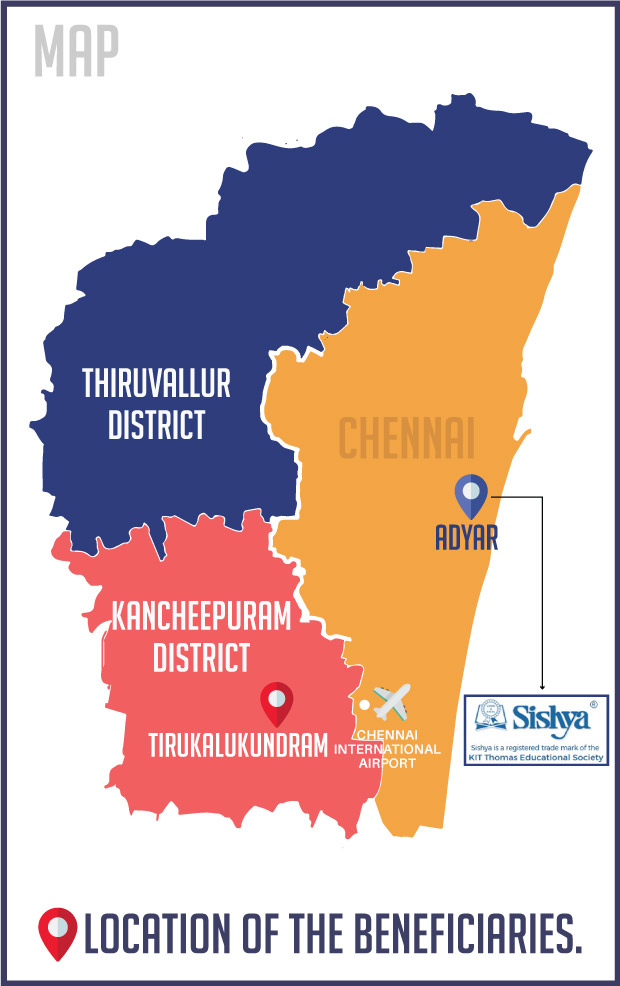 School-going children in many government schools are greatly disadvantaged when they go to school. They walk long distances bare feet, they do not have a proper school bag, and they sit on the floor. All this leads to poor attendance, health issues, and a lack of interest in studies (as their sitting posture itself is very uncomfortable).
