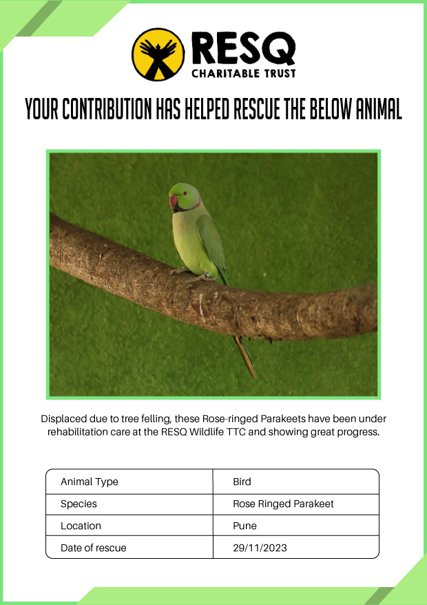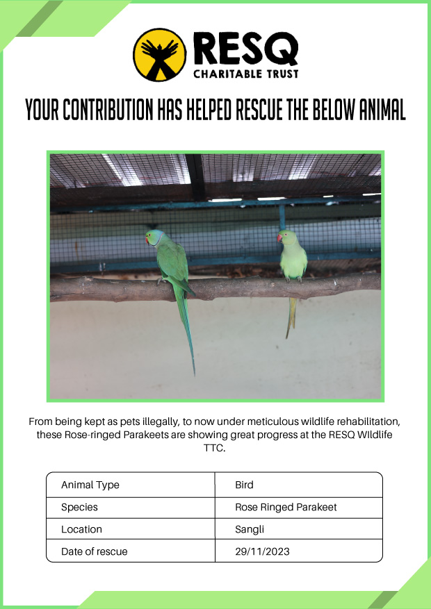 Maharashtra is home to a diverse population of wild animals, many of whom are key species identified to be globally declining. The Pune-based NGO - RESQ provides emergency aid to animals in distress. Thousands of wild animals come to RESQ annually who are either injured, sick, orphaned, or victims of wildlife trafficking and illegal captivity.
