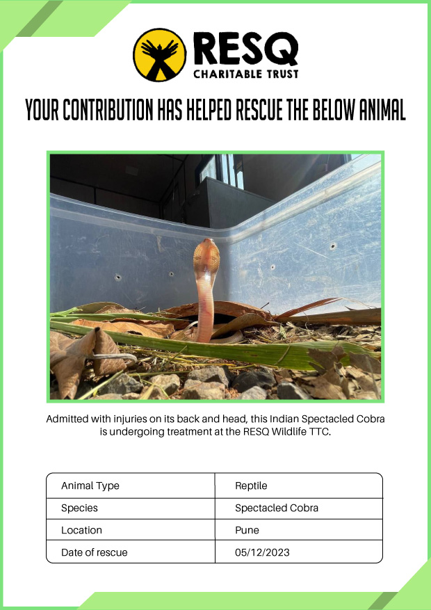 Maharashtra is home to a diverse population of wild animals, many of whom are key species identified to be globally declining. The Pune-based NGO - RESQ provides emergency aid to animals in distress. Thousands of wild animals come to RESQ annually who are either injured, sick, orphaned, or victims of wildlife trafficking and illegal captivity.