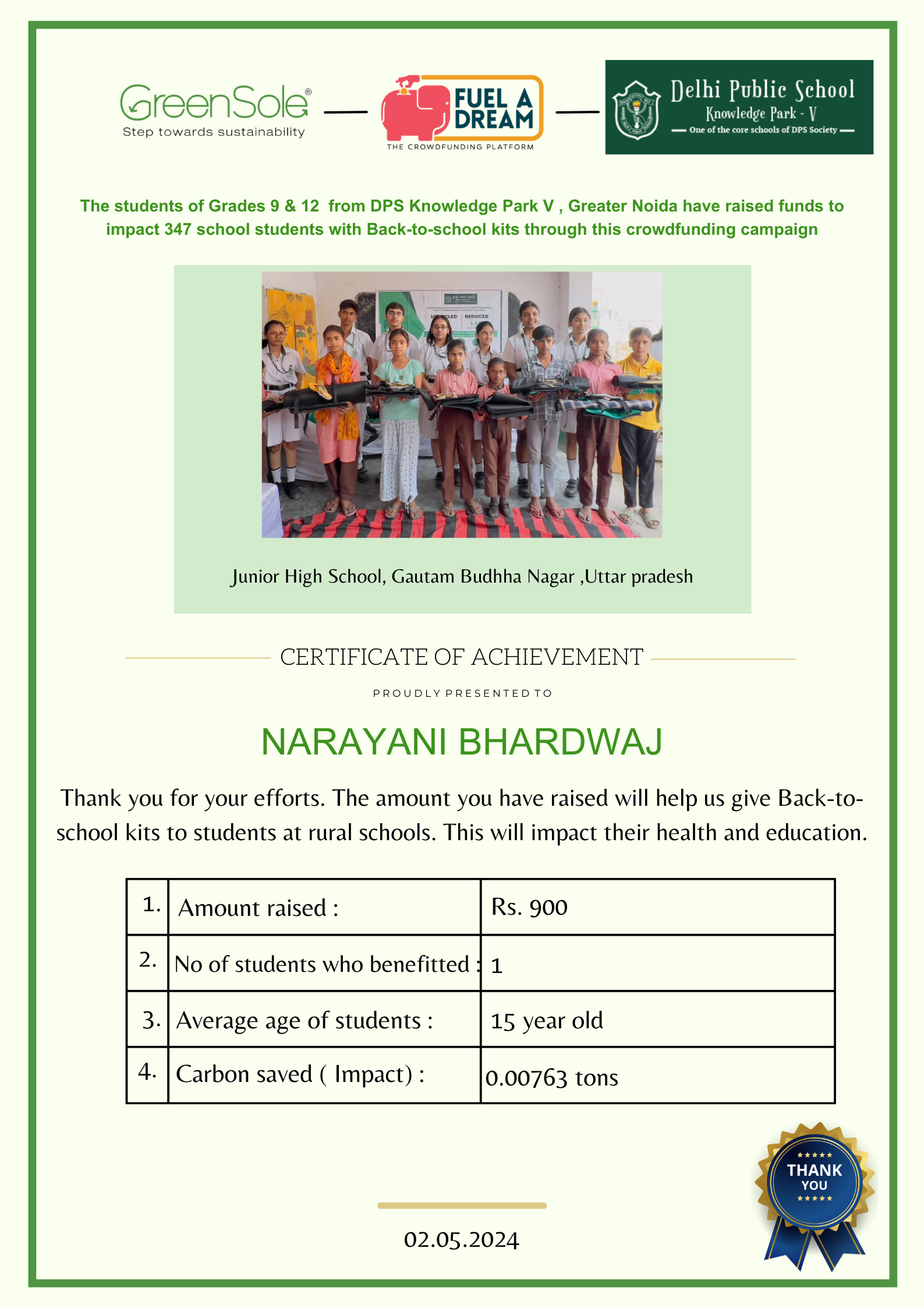 My name is NARAYANI BHARDWAJ . I am 15-years old and a Grade 10 student at DPS, Knowledge Park-V, Greater Noida.
