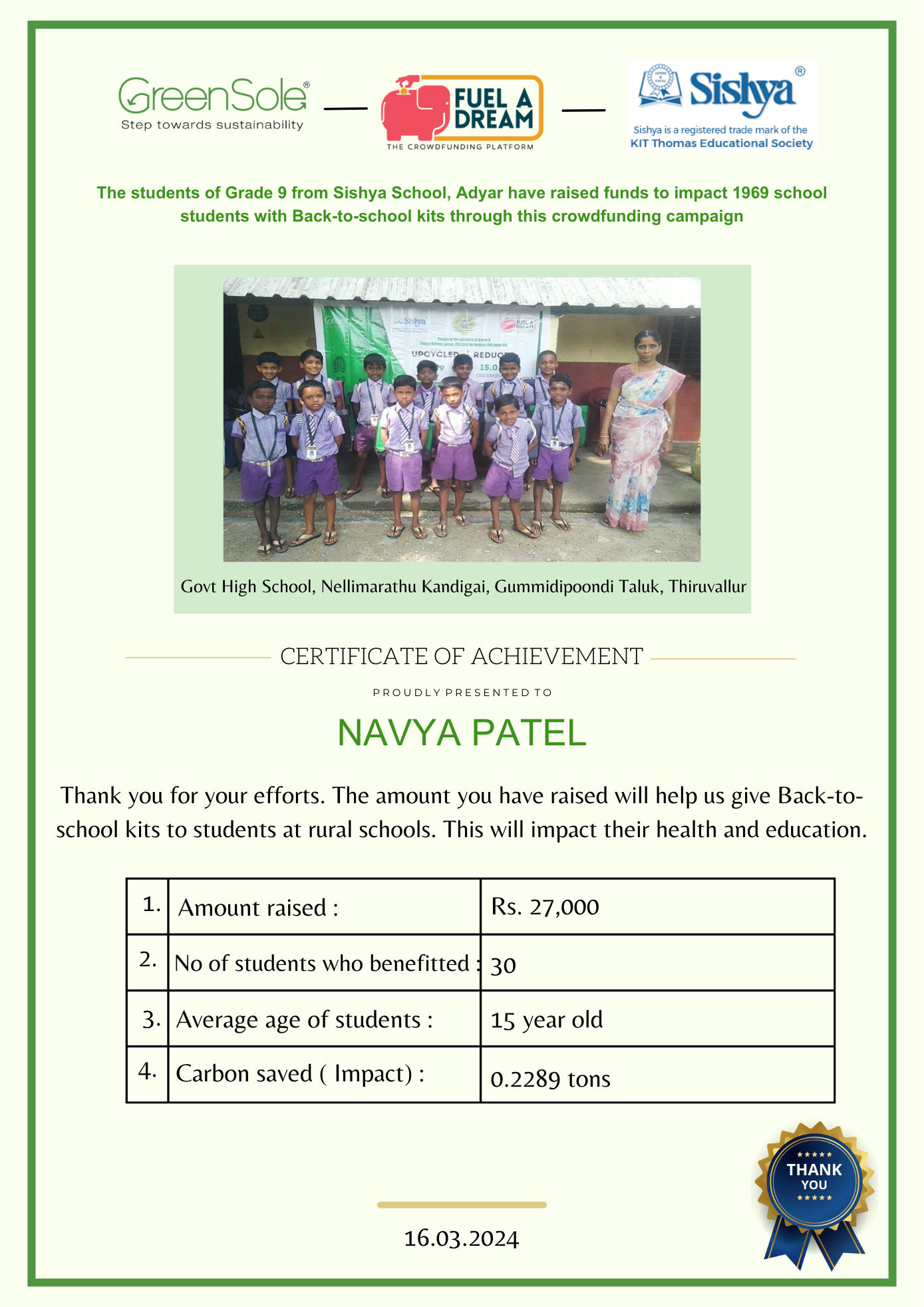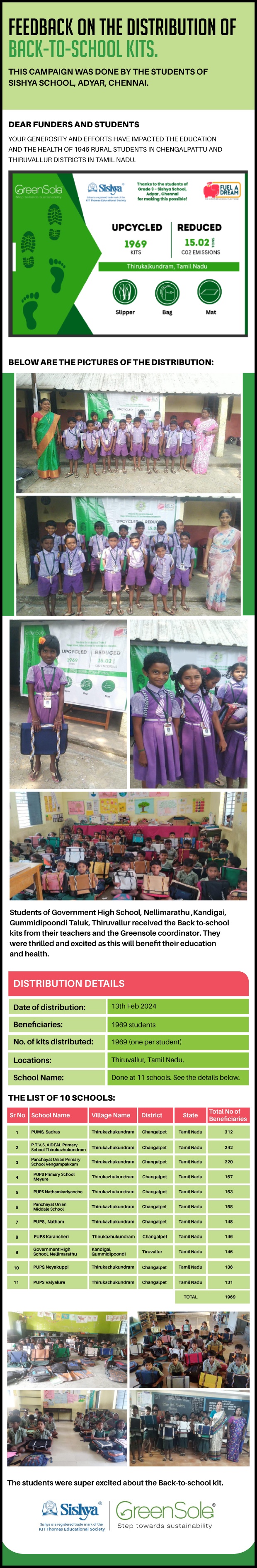 If more funds are raised, the back-to-school kits will be distributed to more schools in Tamil Nadu.