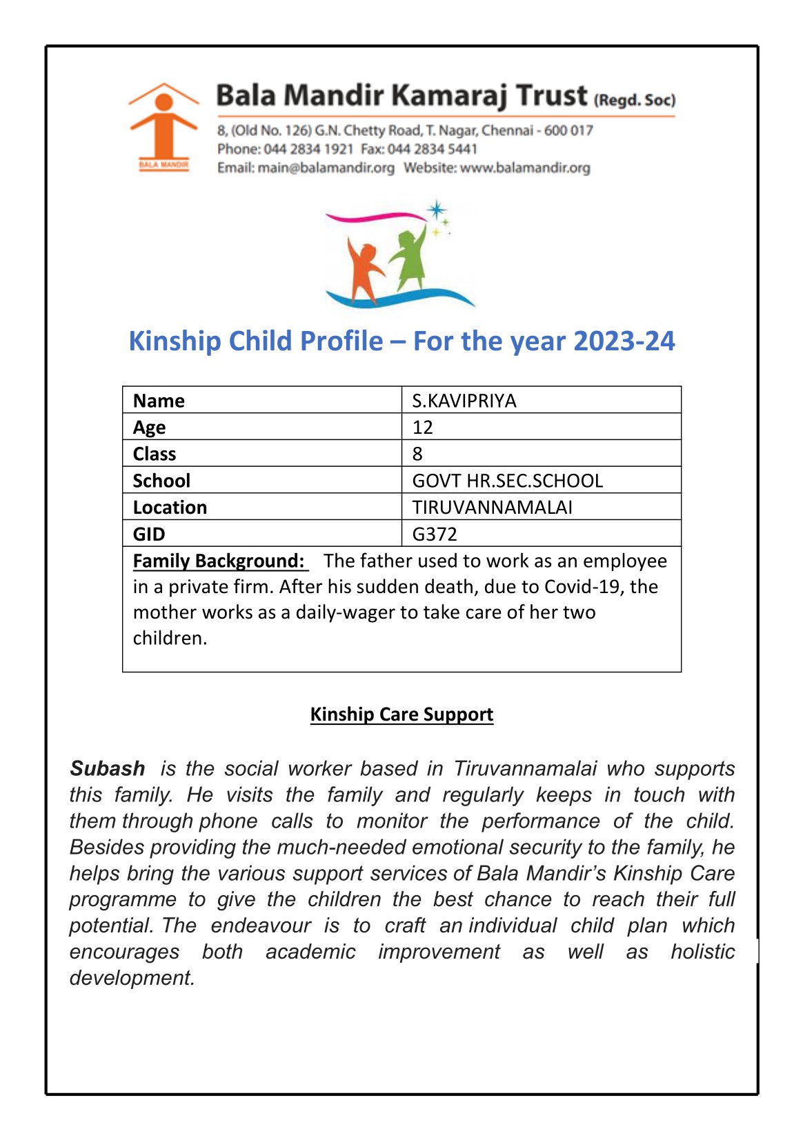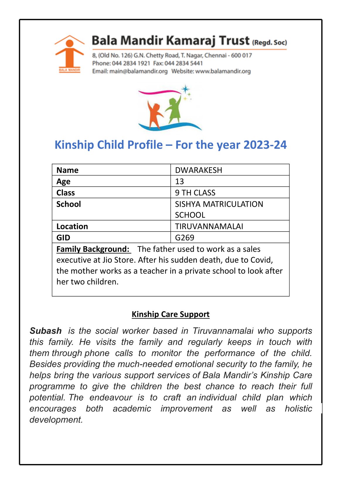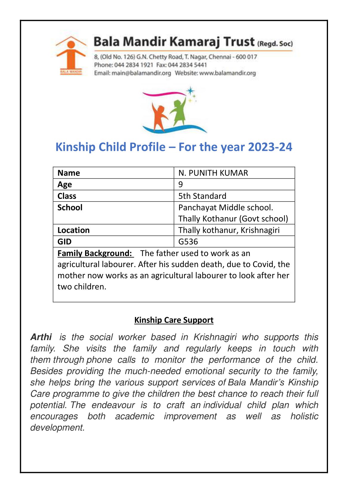 ABOUT THE BALA MANDIR KAMARAJ TRUST (BMKT):