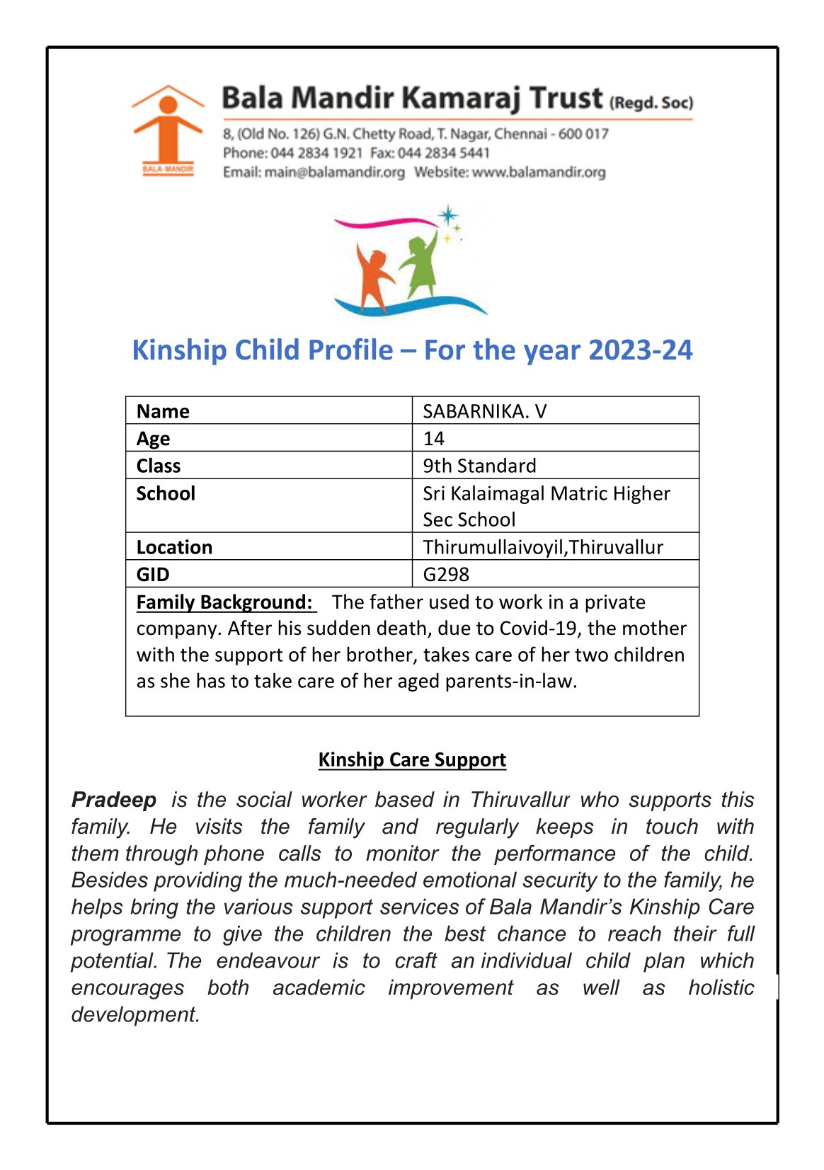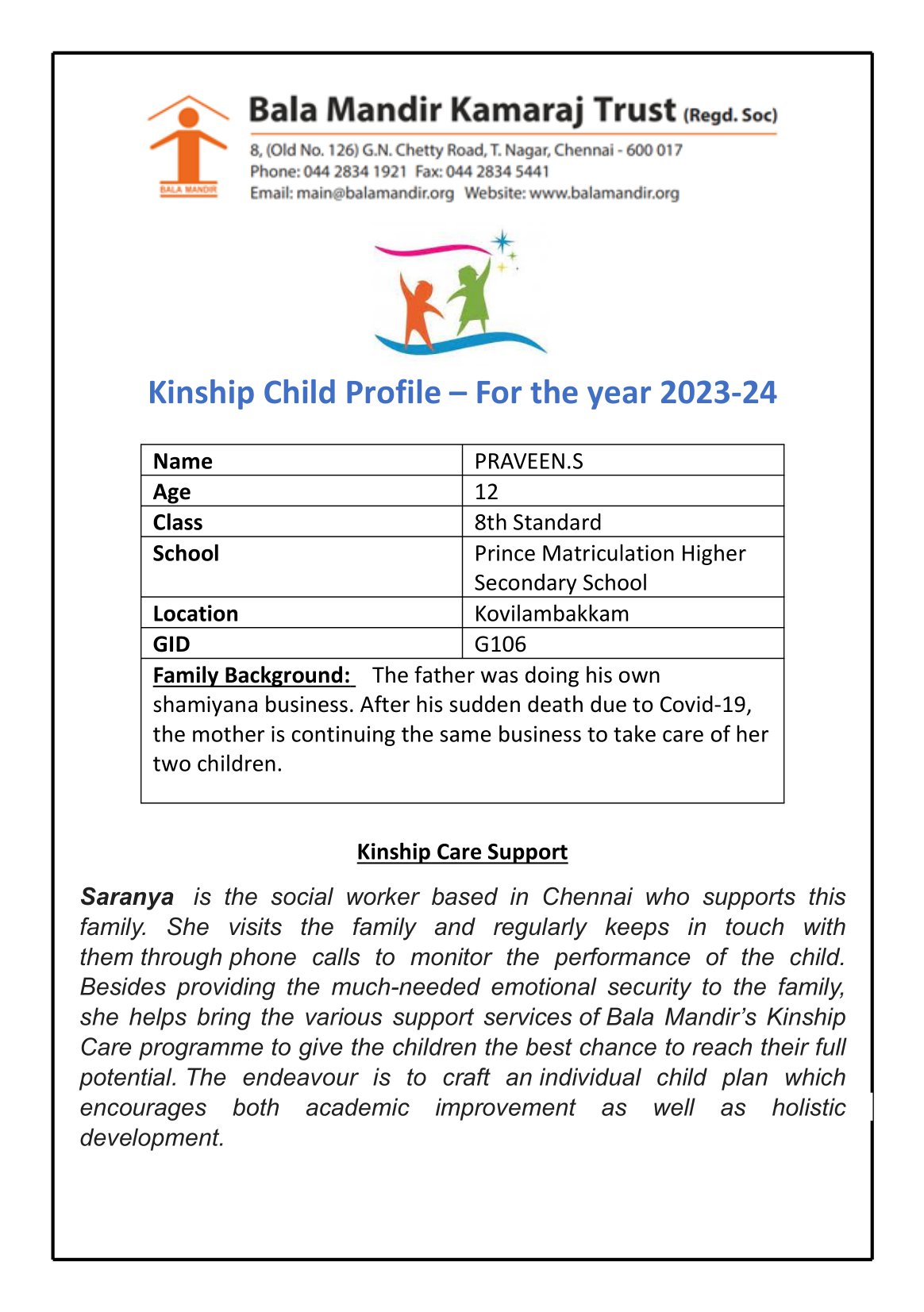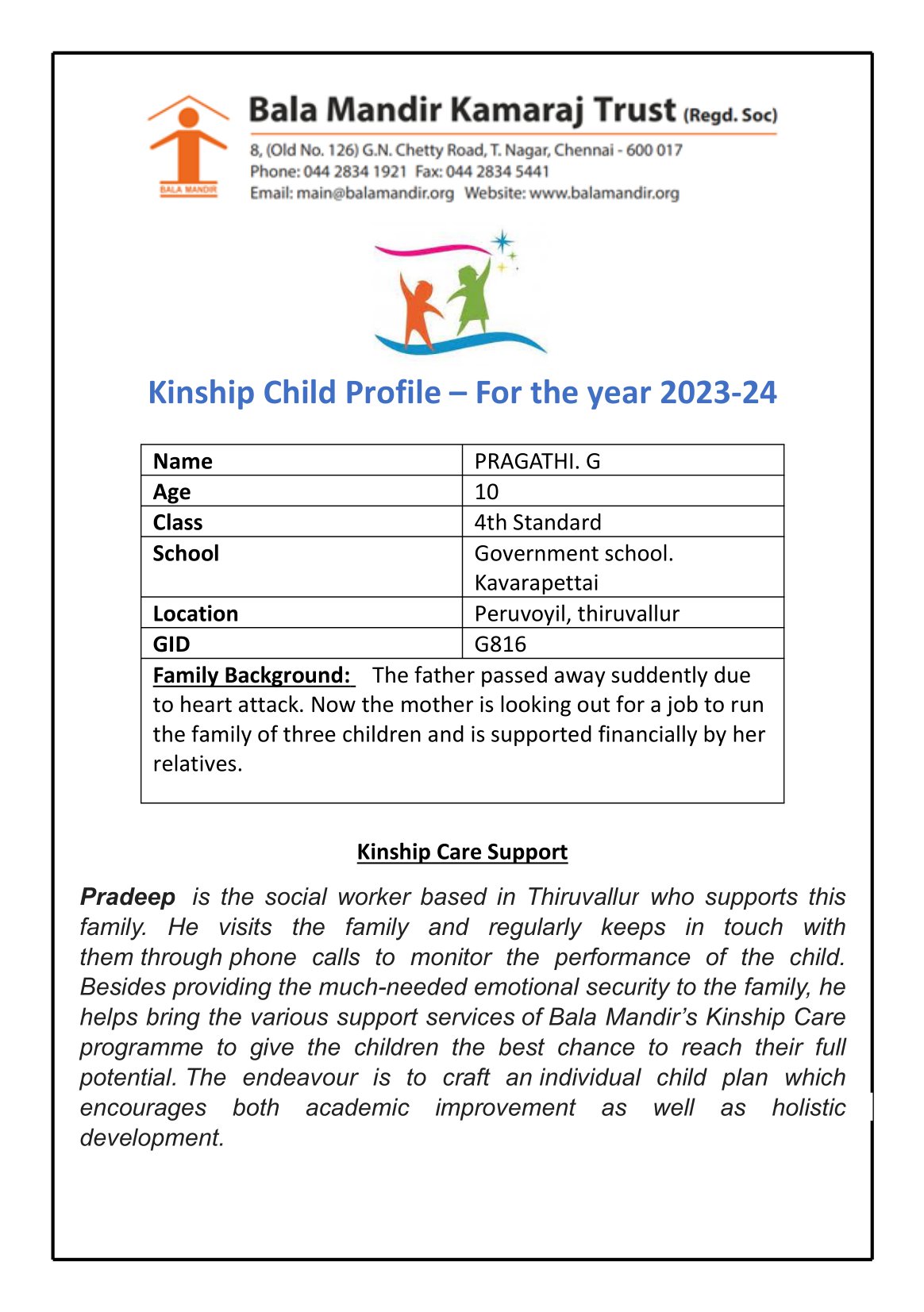 ABOUT THE BALA MANDIR KAMARAJ TRUST (BMKT):
