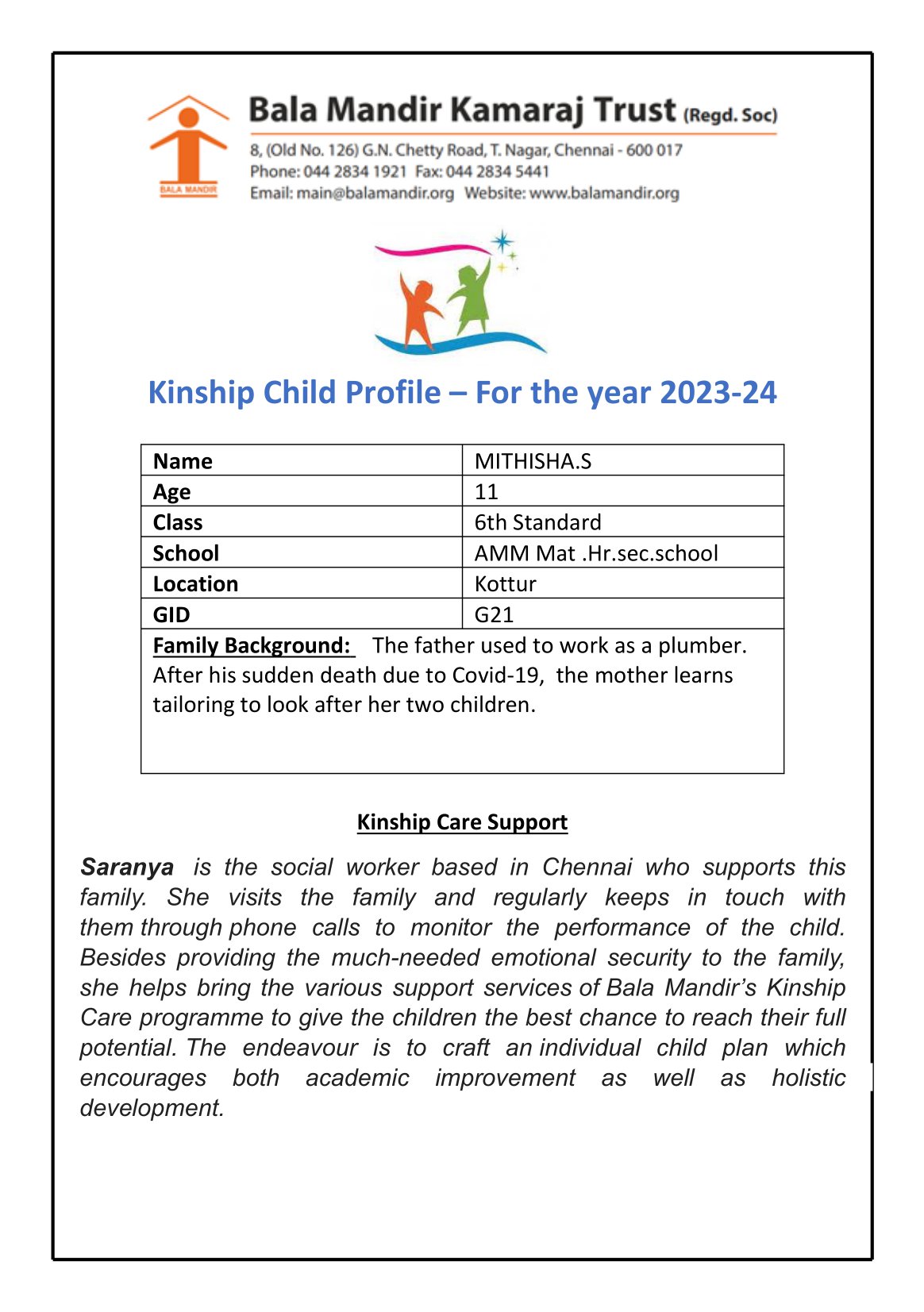 ABOUT THE BALA MANDIR KAMARAJ TRUST (BMKT):