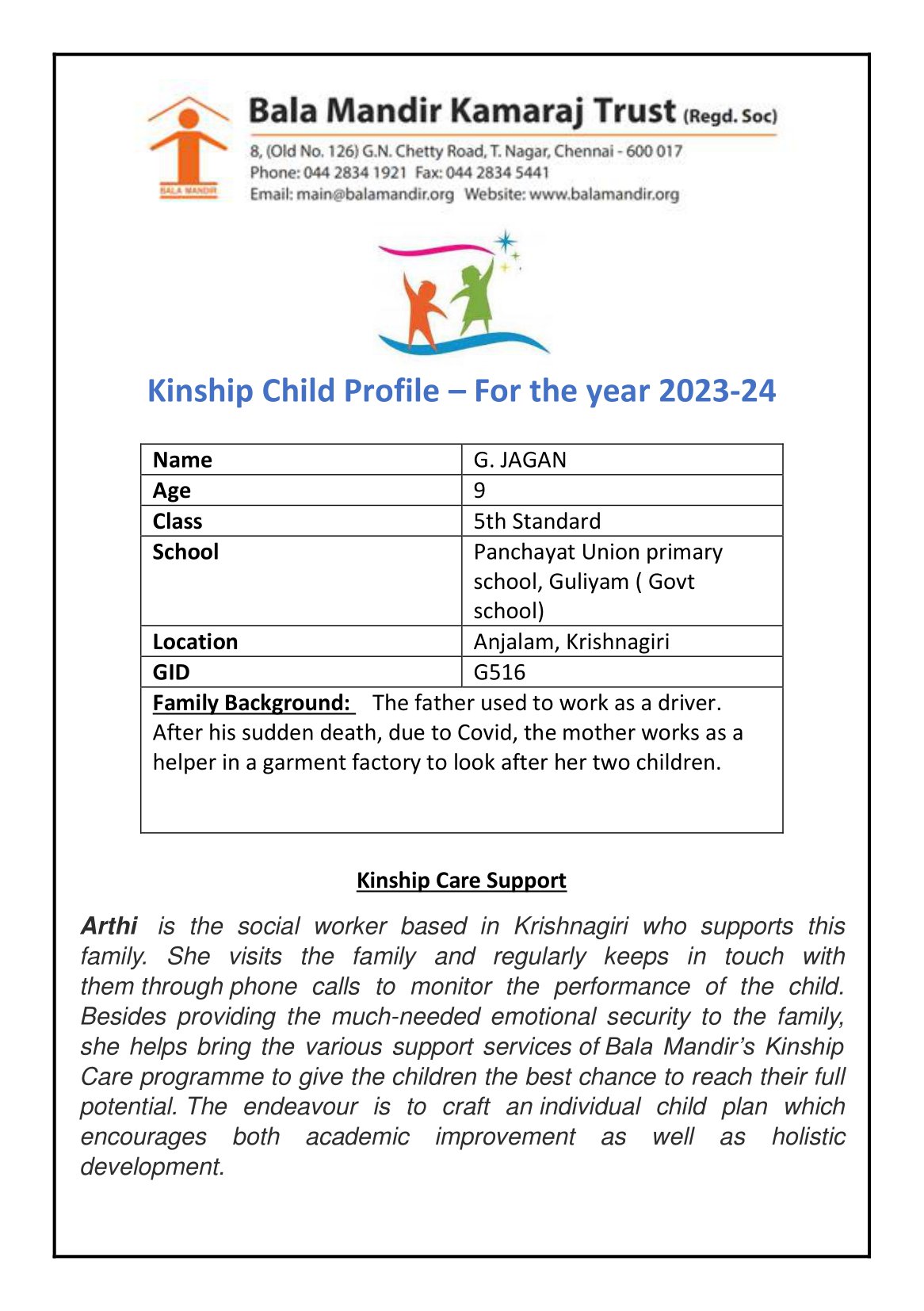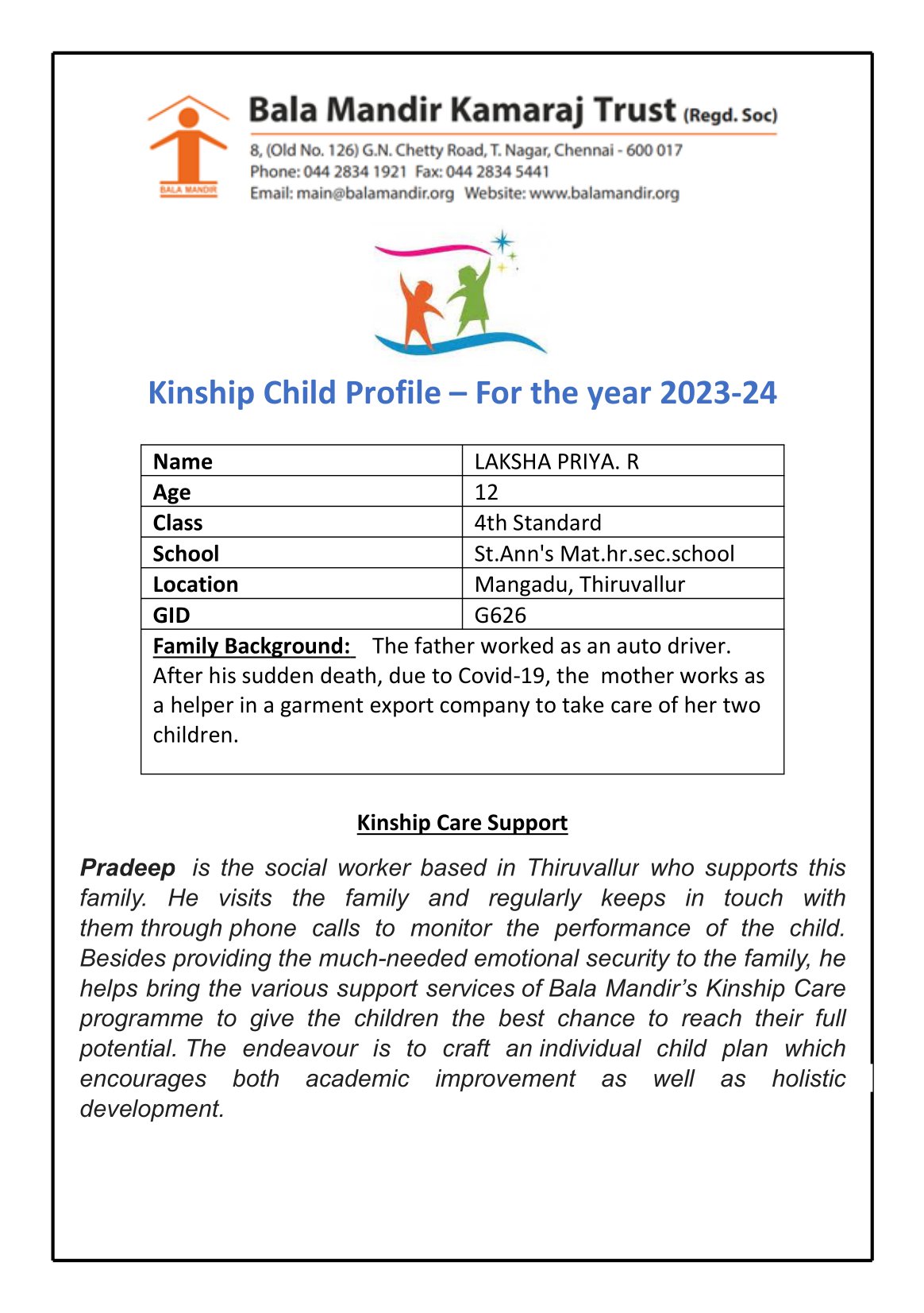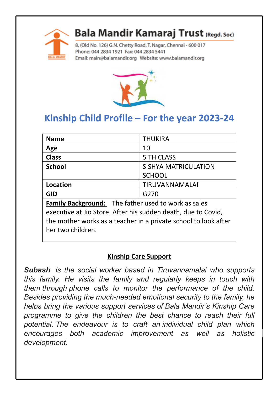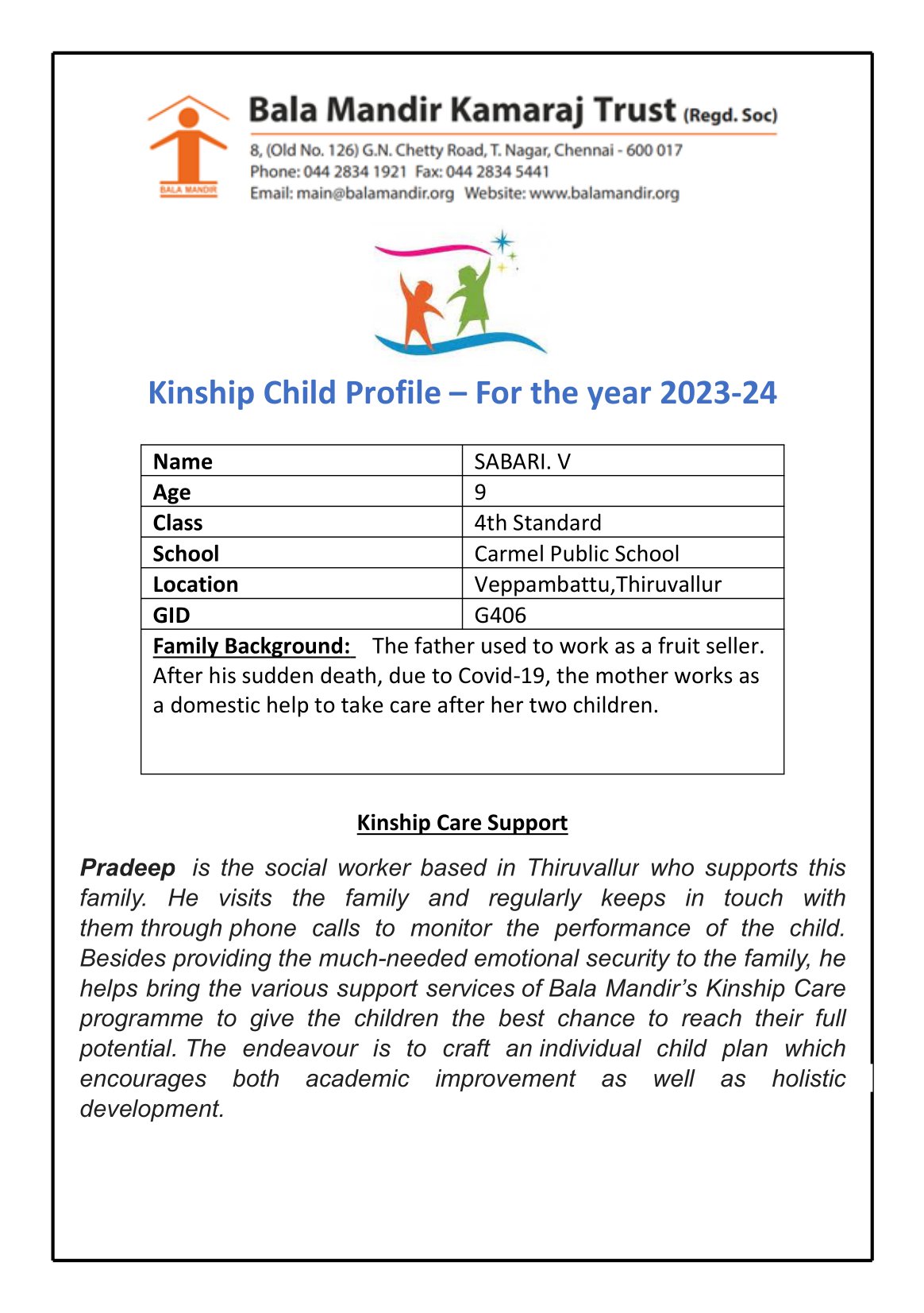 ABOUT THE BALA MANDIR KAMARAJ TRUST (BMKT):