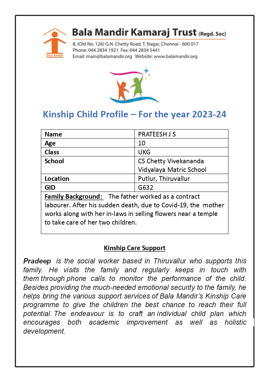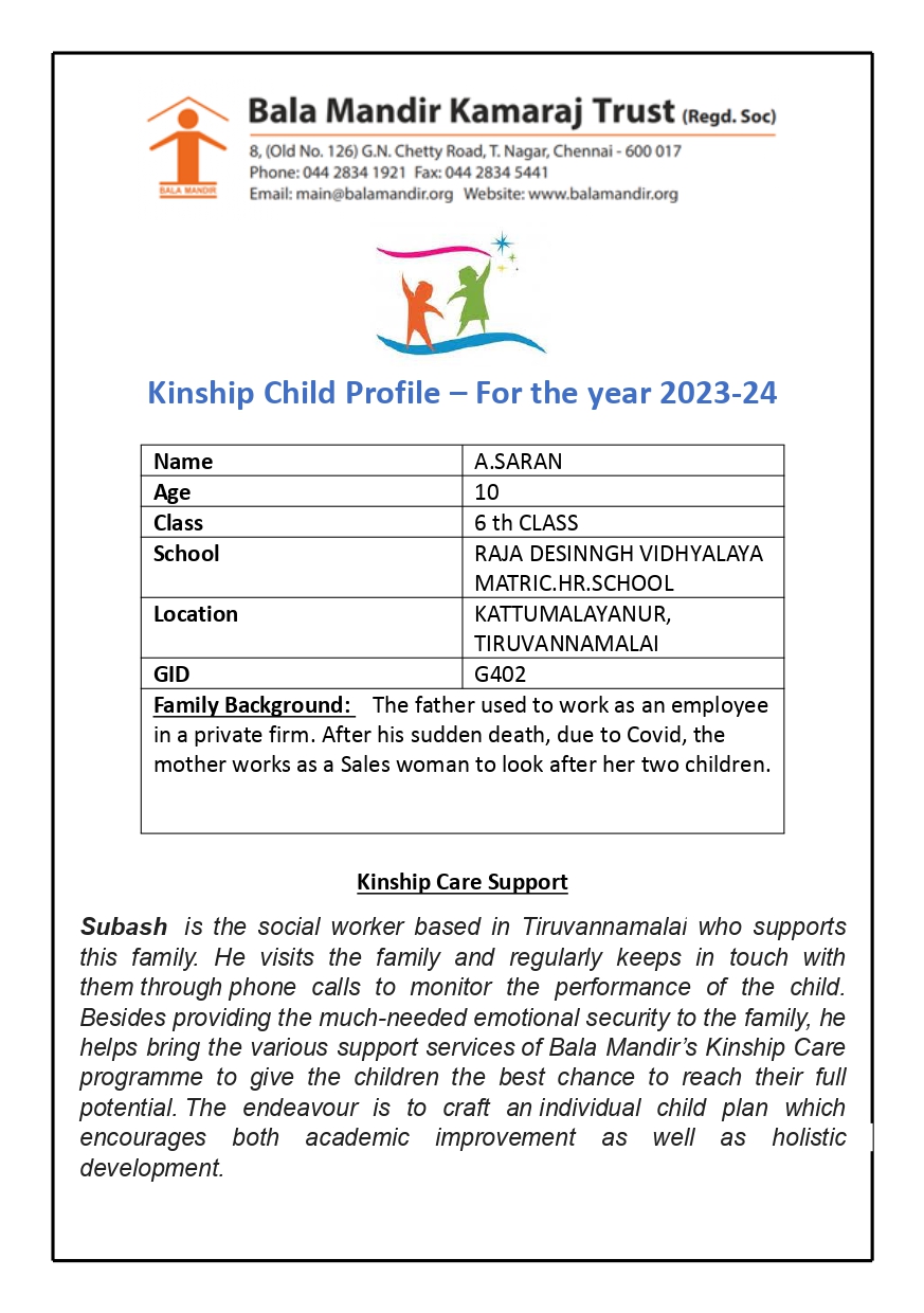 ABOUT THE BALA MANDIR KAMARAJ TRUST (BMKT):